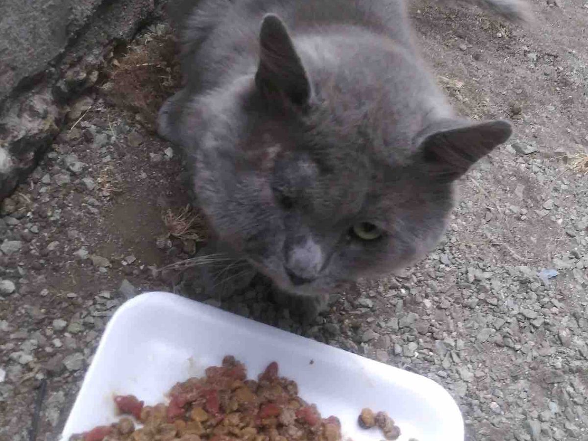 A community feeder contacted us about a kitty in South LA with a life threatening injury to his face. He had an abscess so big he was having trouble keeping his eye open.