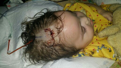 Cello had swelling on top of his head and his neurosurgeon had to do pressure monitoring to see if Cello required a permanent shunt! It scared us to death and made us sick to our stomach that Cello had to endure yet ANOTHER painful experience. They had to drill into his skull to place a temporary shunt to monitor his pressure in his ventricles. He had 13 stitches.