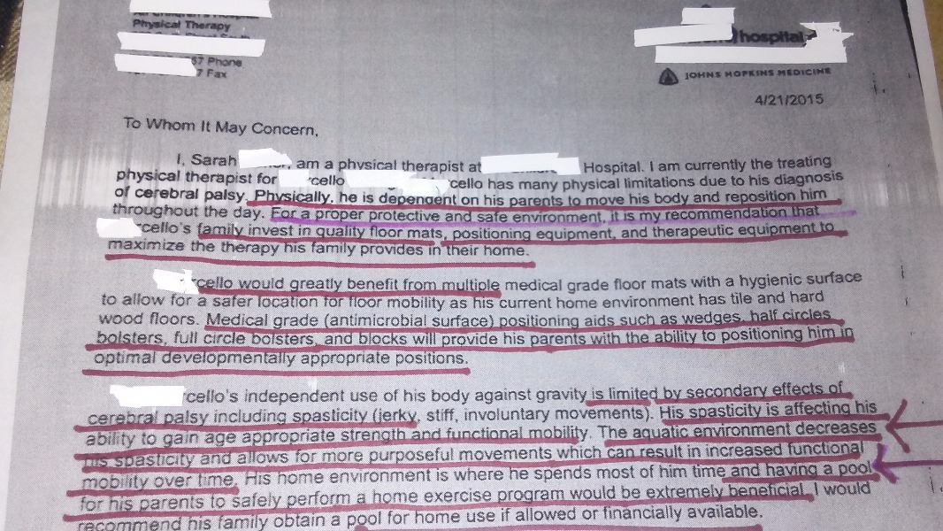 Nearly all of the physician recommended therapies listed above require special equipment and assistive technologies that Cello does not have. Cello would greatly benefit by having a Gait Trainer (a modified walker that encourages early cognitive and learning development, spatial awareness, head control, and teaches him how to take individual steps), Body braces (to prevent deformities), Adaptive Tricycle, Augmentative Alternative Communication (AAC) devices, Mechanical Lift, Specialized Car Seat, Specialized Crib, to name just a few of the special equipment and assistive technology devices that will improve Cello’s quality of life and accessibility.