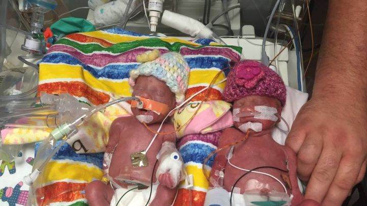 Riley essentially stopped growing and their size difference went from 20% to 30% in just one week. Pipers fluid kept accumulating and Riley was stuck to the side of my uterus, unable to move. I was having ultrasounds every three days and always just praying that they would be able to find two heart beats because sometimes these babies just give up from the stress. As kind of a last resort, they decided to do an amnioreduction to try and remove some of the excess fluid from Pipers sack. The fluid re-accumulated in just two days. Three days later at 26 weeks and 6 days, our girls made their grand entrance into the world.