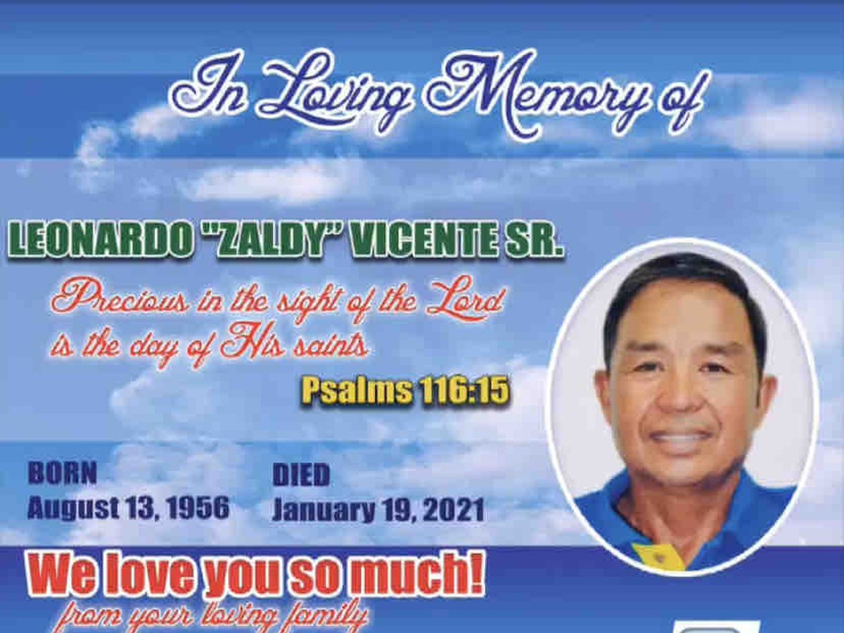 This unexpected passing of Leonardo Vicente today, has brought his family not only grief and sorrow but also financial burden.