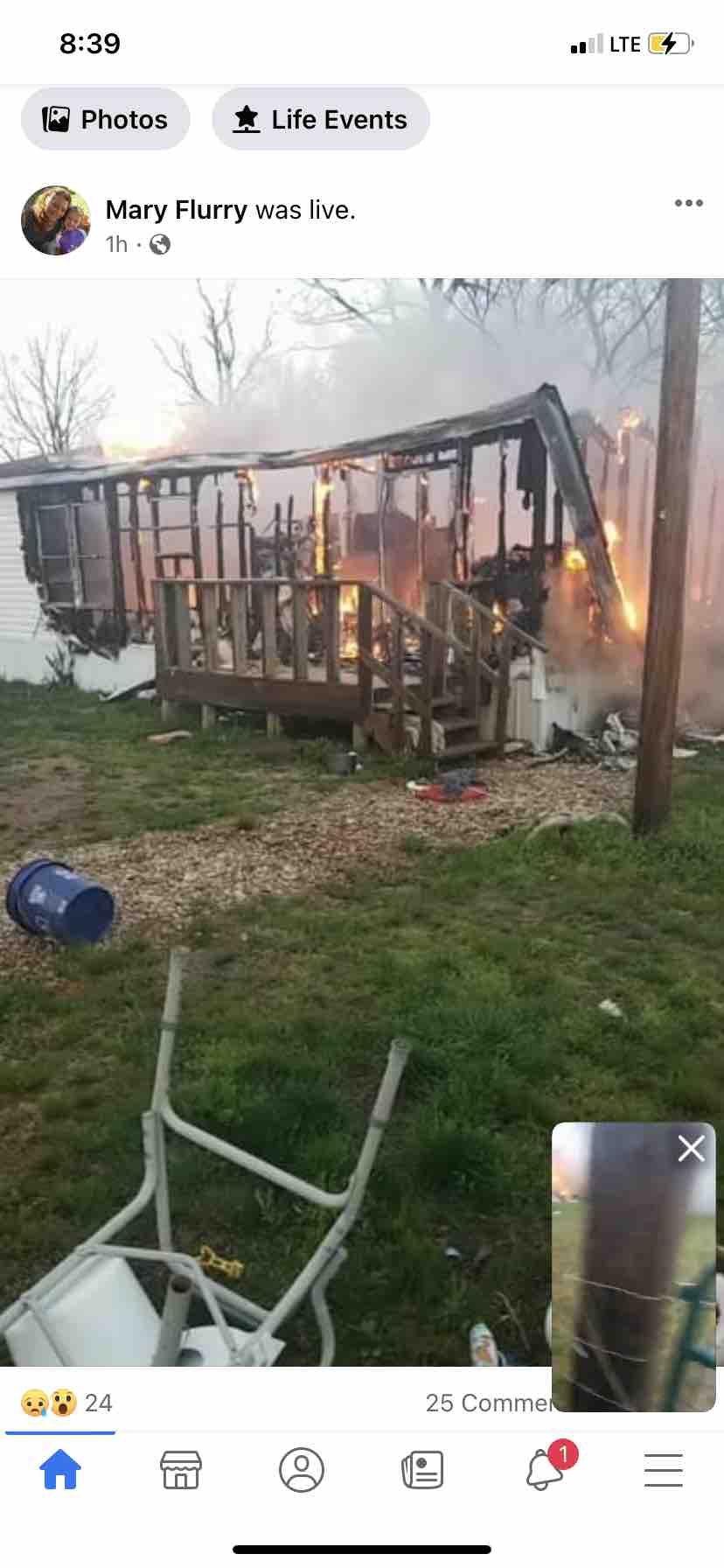 My parents home that they had worked so hard on burned down today, March 23. My Dad was having breathing problems and his oxygen levels were low so my mom rushed him to the hospital. She couldn’t stay there with him so she was sent home and when she arrived she saw her house burning to the ground and was already too far gone to save. No one was hurt but they lost their family dog Susie who ran under a bed and didn’t get out in time.