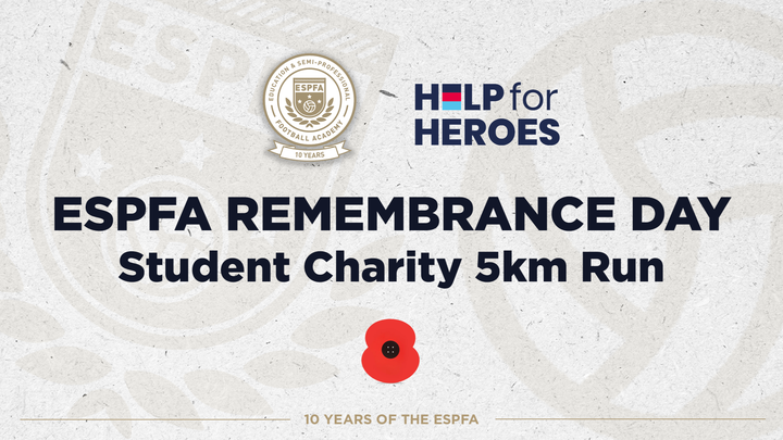 On Thursday 9th November 2023, students from the Education and Semi-Professional Football Academy across the country will be raising funds for Help for Heroes by taking part in a 5KM run.