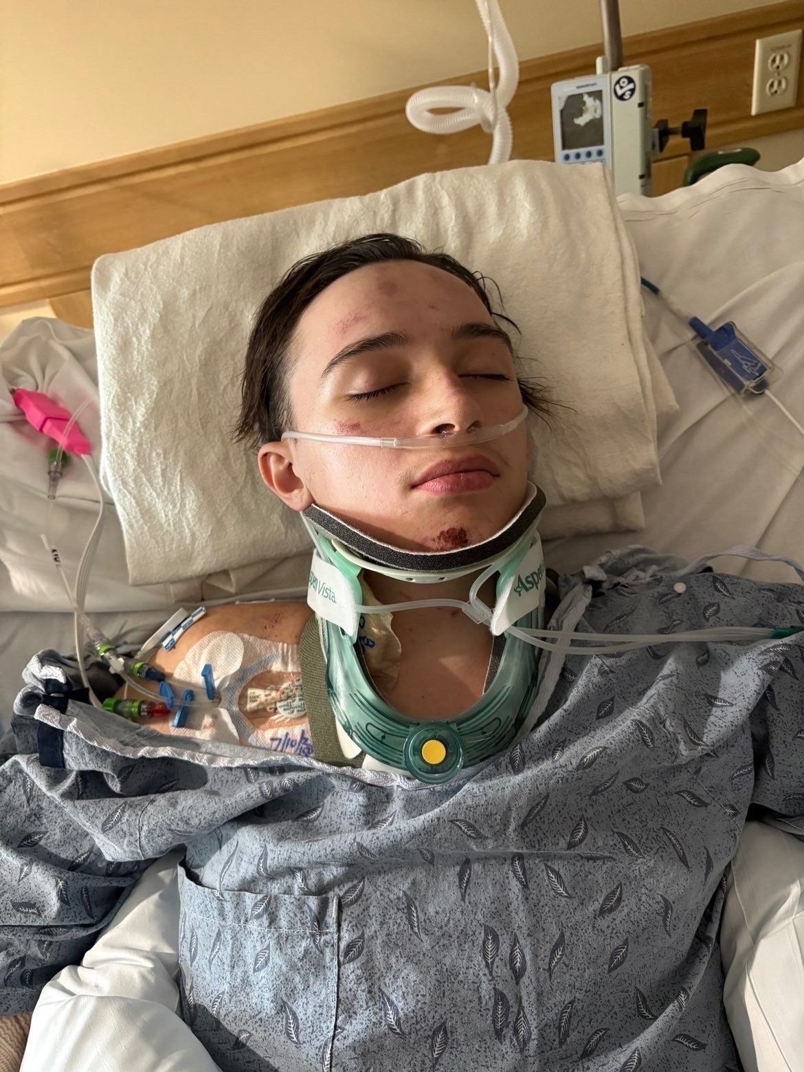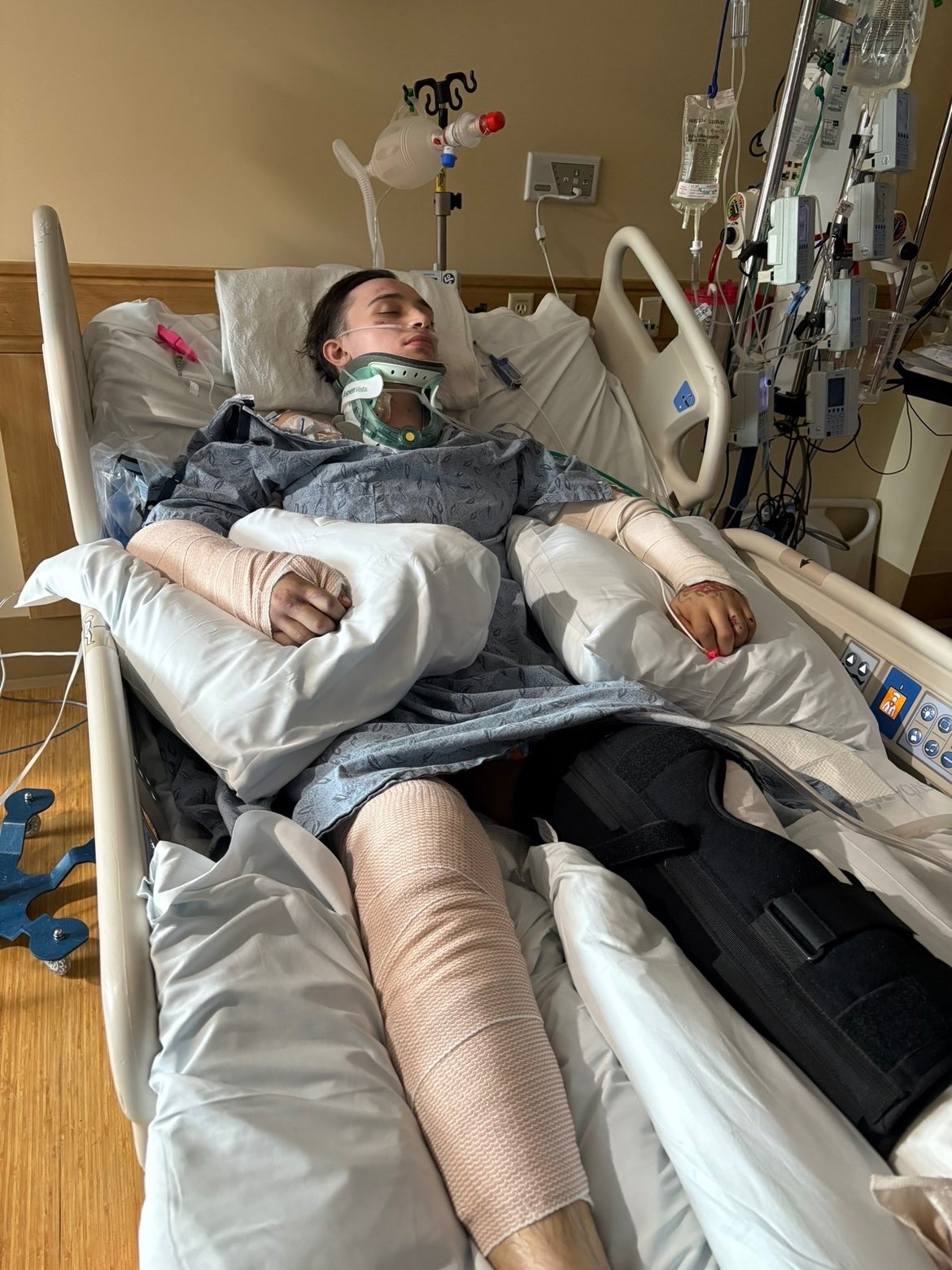 He had broken 28 bones. Both of his lungs collapsed. He had 10 emergency surgeries to secure his life. He broke every limb in his body. He had countless tubes coming out of him to keep him alive.