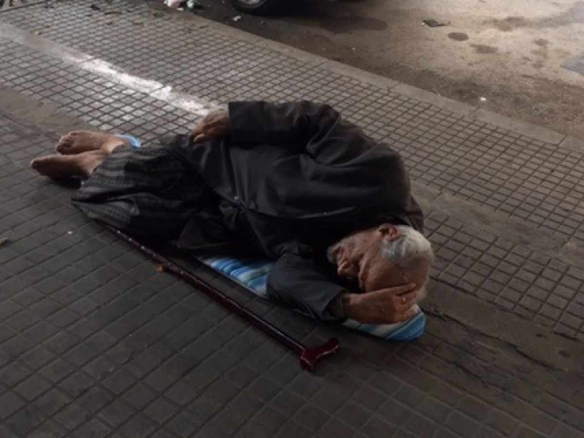 This 84 year old man told me he was abandoned by his own son. He's been living on the streets of Beirut for the past three months. He spends his days on the pavement as shown in this photo and his nights at a close by mosque.