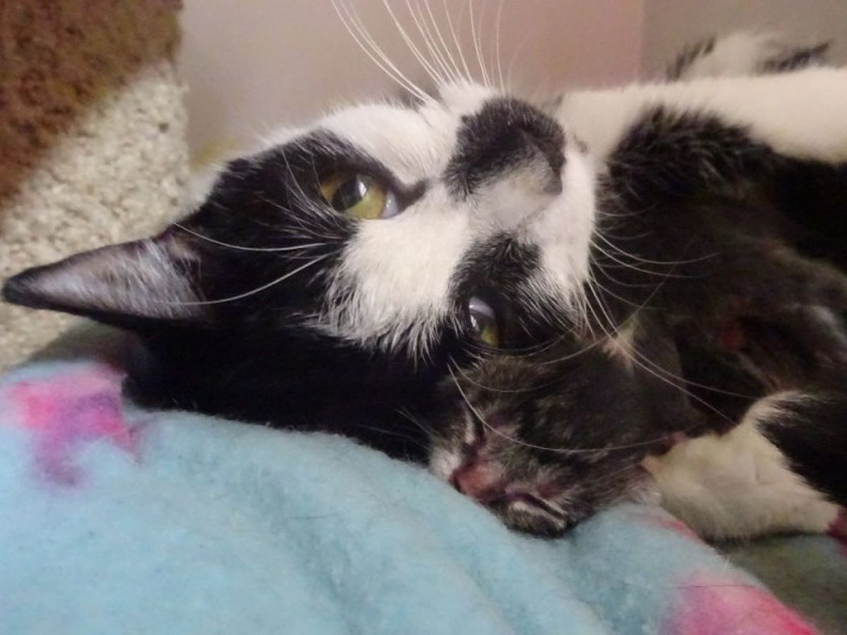 After an examination, Katie has been diagnosed with Metritis, and is remaining in vet care on a drip and IV antibiotics to try and reduce her temperature, which is dangerously high. Metritis is a uterine infection that usually occurs within a week after a cat gives birth, and is an inflammation of the lining of the uterus. Without urgent medical intervention, Katie would have died.