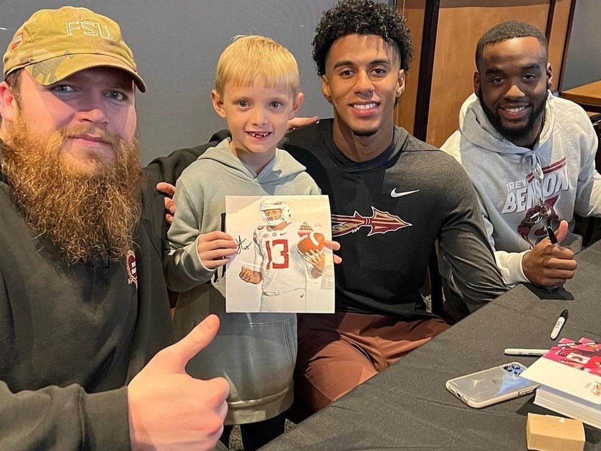 Dillan Gibbons, Big Man Big Heart Ambassador / QB1 Jordan Travis, and the newest Big Man Big Heart Ambassador - running back Trey Benson have teamed up to raise money to bring joy into the lives of underprivileged children and their families in the Tallahassee community during the holidays. Jordan, Trey, and Dillan are planning the Second Annual Big Man Big Heart Holiday "Shop with a Player" event- an event that will pair underprivileged and at-risk Tallahassee children from the Boys and Girls Club of Tallahassee with an FSU Football player for a fun-filled afternoon including holiday shopping at Walmart, fun football activities with the players, followed by pizza sponsored in part by Gaines Street Pies. Each child will be given a gift card with a spending budget for themselves and sent home with another gift card for their family to use for holiday shopping. Big Man Big Heart will also be adopting a needy family and sponsoring the entire family's Christmas!