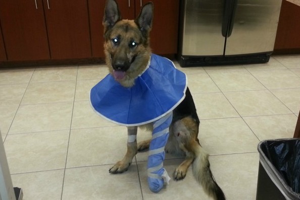 Apollo spent 2 days in intensive care to evaluate the extent of his internal injuries. This animal has an amazing spirit and pulled through just fine. He required extensive and expensive surgery to fix a broken leg. We couldn't justify having this beautify animal put down because of a broken leg. The surgery took place on 4/25/13 at the University of Florida. He will be recovering at the Emergency Pet hospital for next few months. Our next focus will be on to repair the broken teeth.