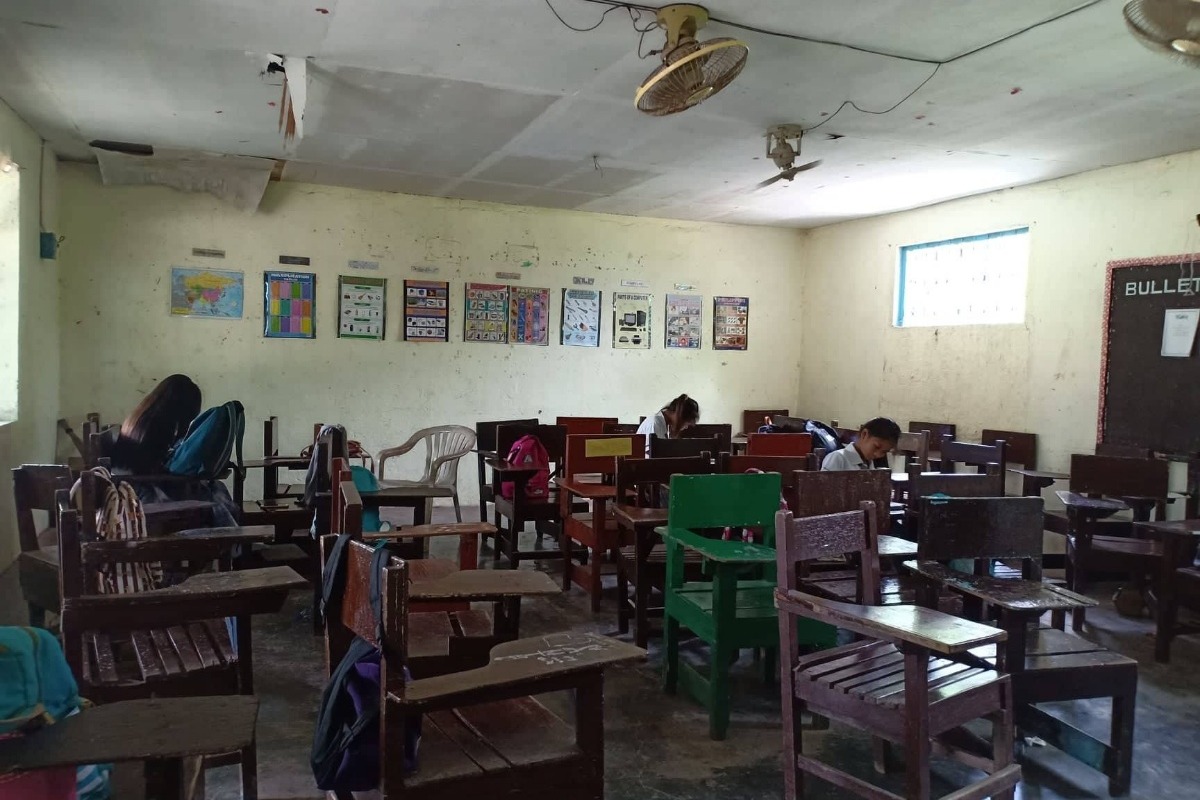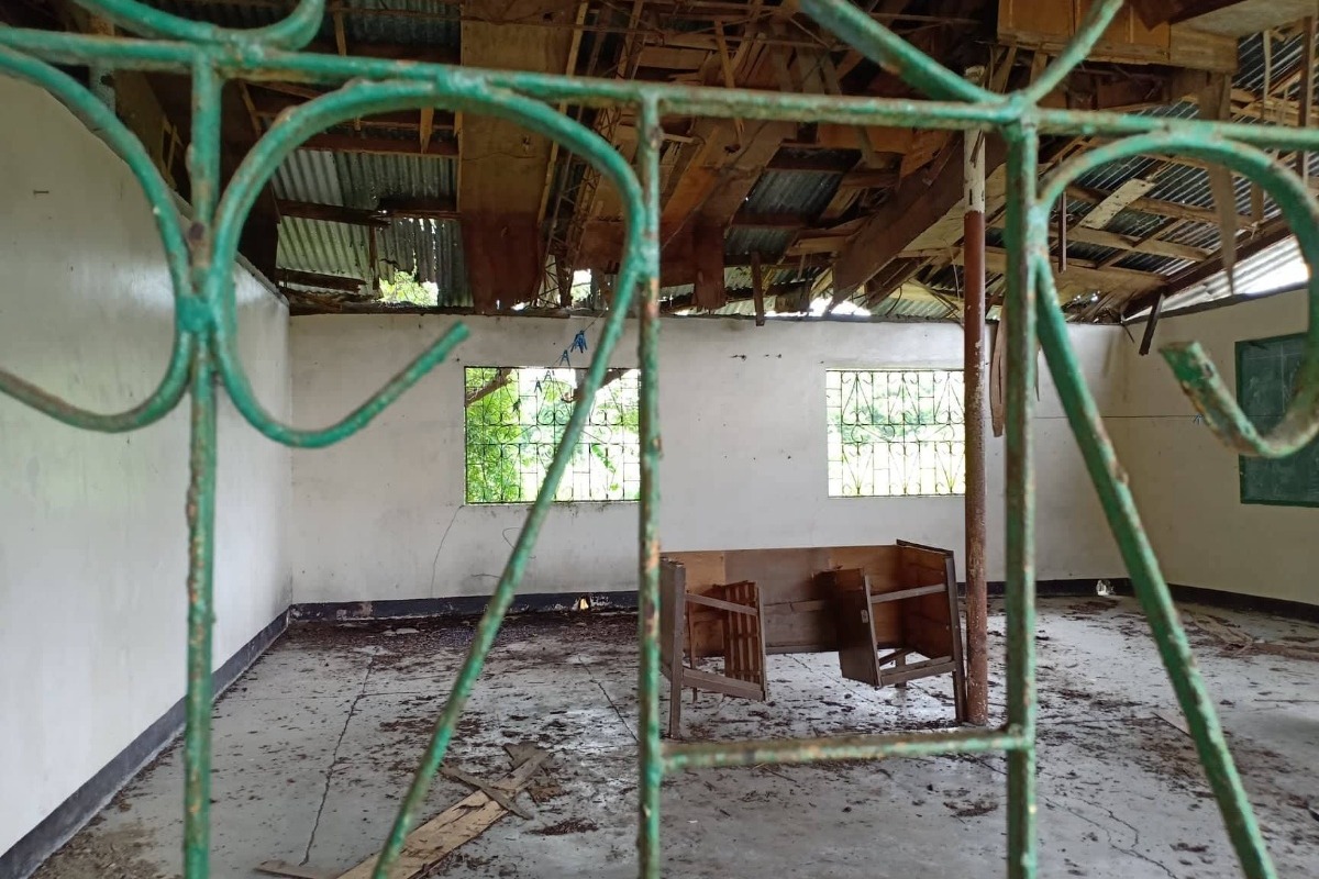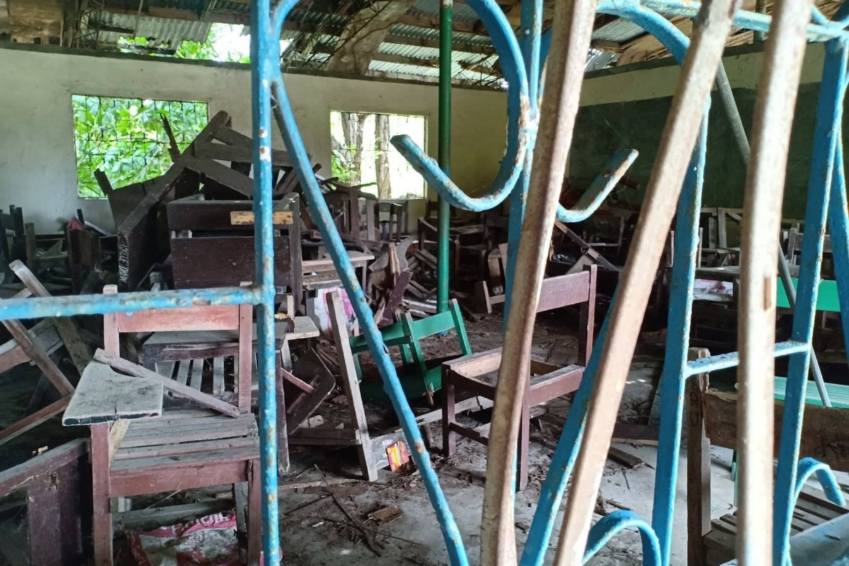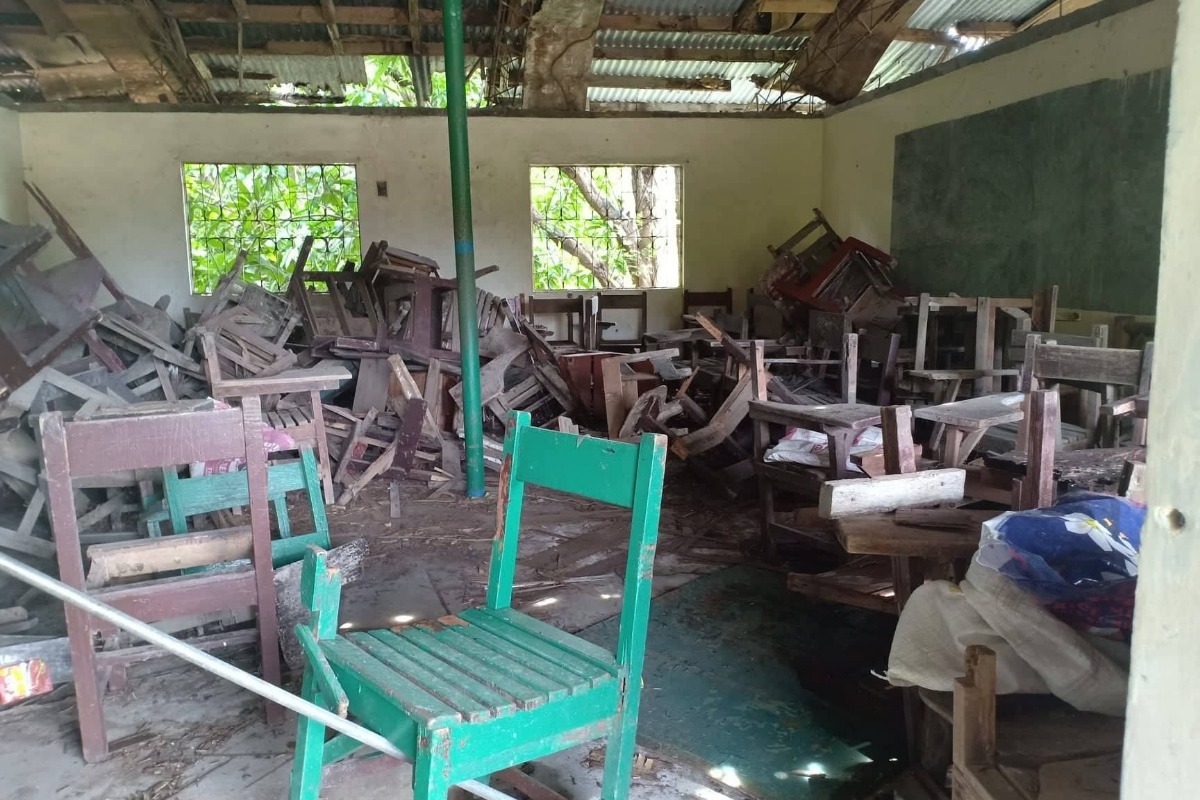 Some of the rooms that are still usable but need to be repaired. There are not enough desks in the second photo down, but gofundme donors helped solve that problem. Evelyn was also able to get the ceilings repaired. The roof just needs to be replaced now.