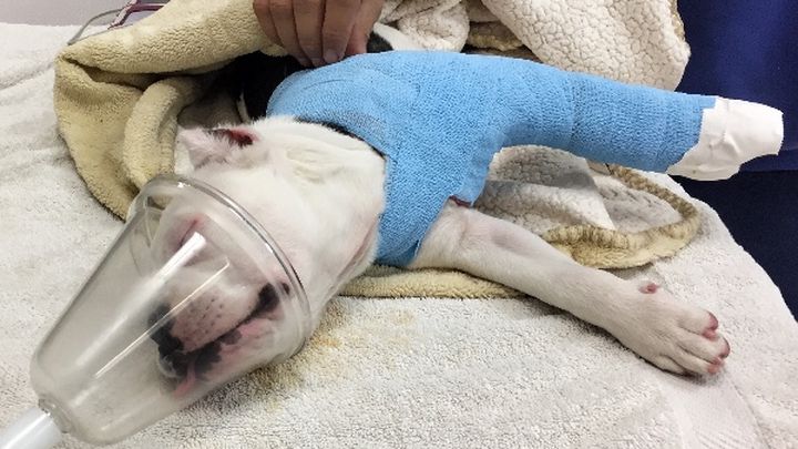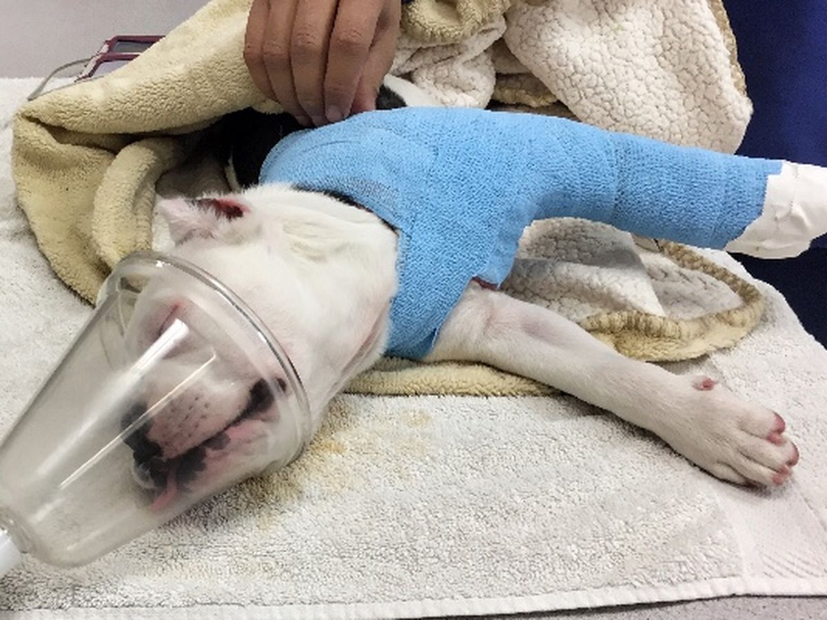 Rango (14 week old rescue) was playing and running through the house, with his brother, when he slipped on the hard wood floors and severely broke his elbow(Humerus) on top of one of his growth plates.