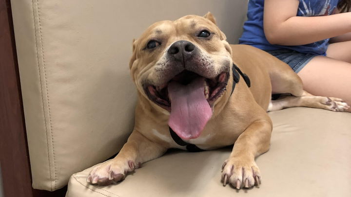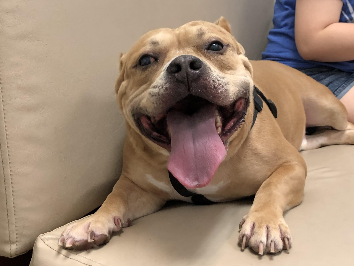 We’d love for you to meet Meatball—our sweet, goofy, and always-hungry American Staffordshire Terrier. Meatball first came into our lives in November 2021 as a foster, and from the moment he walked through our door, he felt like family. When it came time to decide whether to return him to the shelter, we couldn’t imagine letting him go. So, we made it official and adopted him.