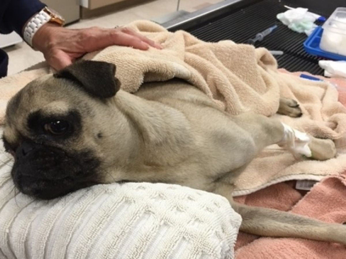 We got a message through our FB page that a friend's friend had a Pug that needed help desperately. Her Pug Elsa was hit by a car and put aside on the street for hours before they were notified. The owner could not afford any care for Elsa; as soon as we got the message we sent back word that we would take her in and get her whatever care she neeed and to forward the owner's contact information to us ASAP. We were able to reach the owner this morning, and immediately drove to L.A. to pick up Elsa. This poor dog was in excrutiating pain, shaking and crying, laying in her own urine. We rushed her to emergency; she has a broken pelvis and femur and her eye was also damaged beyond repair and will have to be removed. She was shaking so badly the doctors couldn't tell if she was having small seizures or was trembling in pain; she will also have to have a CT Scan to be sure no disks are ruptured as she appears to be ataxic. Another possibility of her neurological issues at the moment could be a concussion or even a liver shunt. All this remains to be seen. At the moment, she's resting comfortably and is being administered pain meds; she will most likely have surgery to repair her pelvis and leg Wednesday, as well as the CT Scan. We are taking it a step at a time and will mostly likely have to do the enucleation with a spay at a later date. Elsa has a long road ahead but she's in our hands now and we will do whatever it takes to have her on her feet again, and ultimately, in a perfect home. We will apply all funds received towards her medical bills, which no doubt will tip the scales between $5,000 and $10,000 depending on what further tests and procedures she needs. But this sweet girl deserves a chance; please give what you can. Thank you so much.