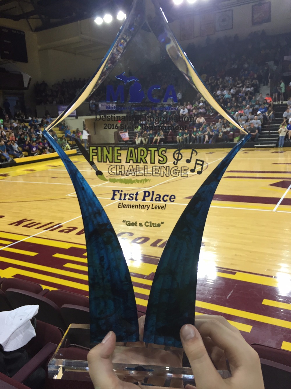 Our team placed first in the state of Michigan for our central challenge, Get A Clue.