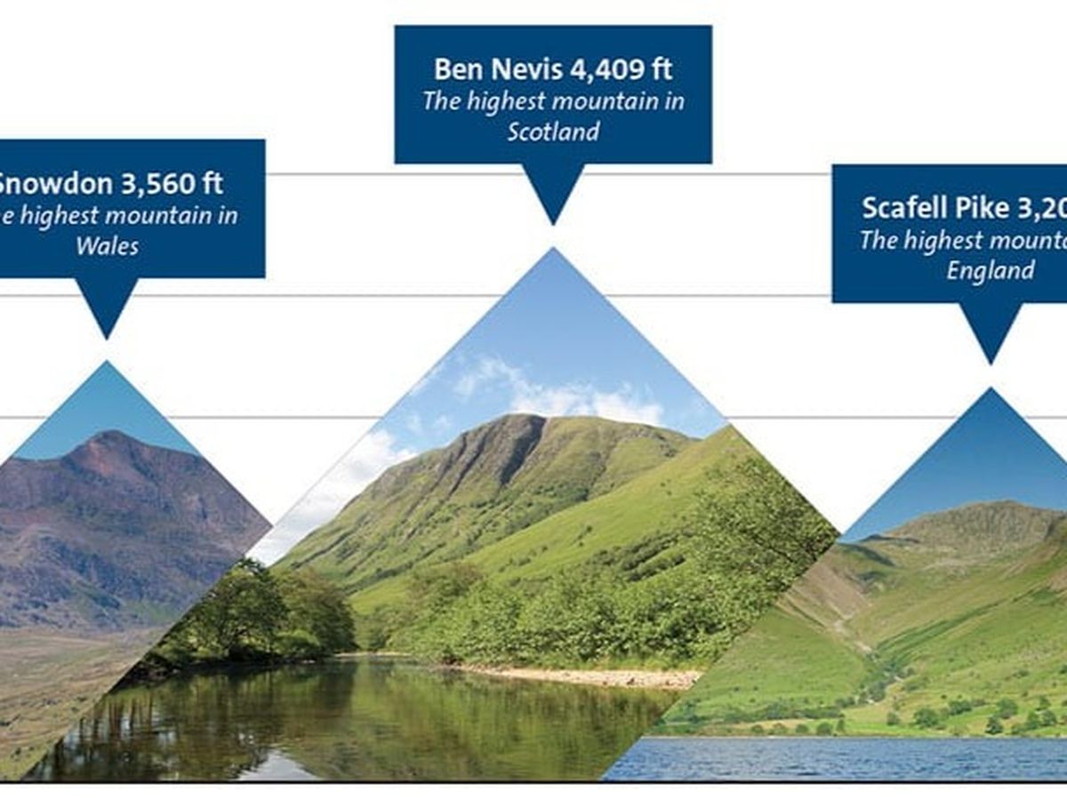 The National Three Peaks Challenge involves climbing the three highest peaks of Scotland, England and Wales - Ben Nevis, Scafell Pike and Snowdon.