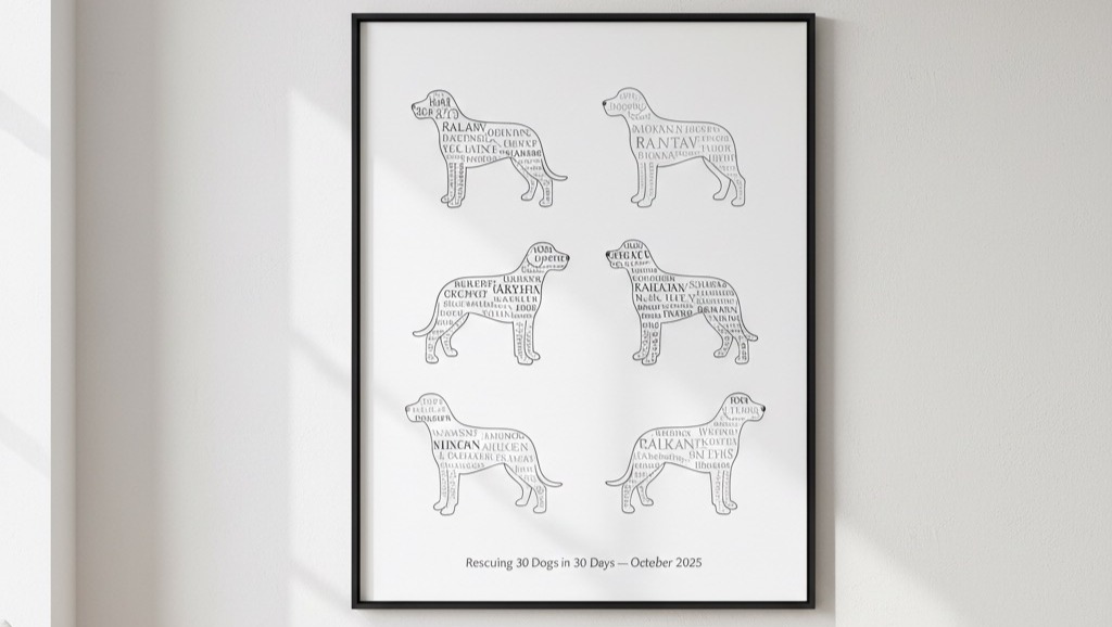 We’ve now set a new target of £40,000, and if we reach it, we’ll be creating a beautiful framed artwork made up of the names of every single person who donated to help rescue these dogs.