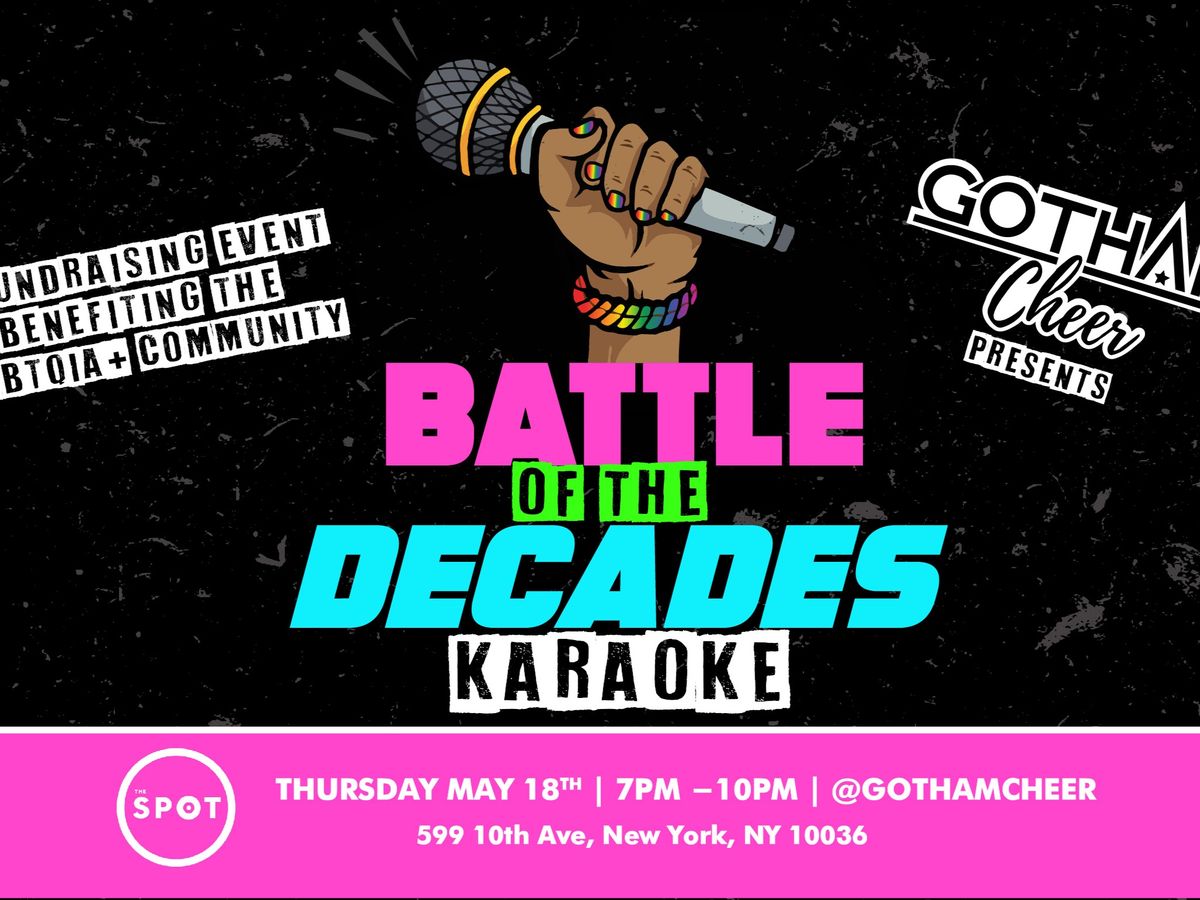 The Battle of the Decades fundraiser is an exciting event that will bring together talented performers across NYC for an epic Karaoke competition. Gotham Cheer cheerleaders will be among the performers battling it out for full bragging rights as ‘THE’ Best Decade, representing the 1970’s, 80’s, 90’s and 2000’s. Come cheer on your favorite team, enjoy some great music, and raise money for the Brooklyn Community Pride Center.