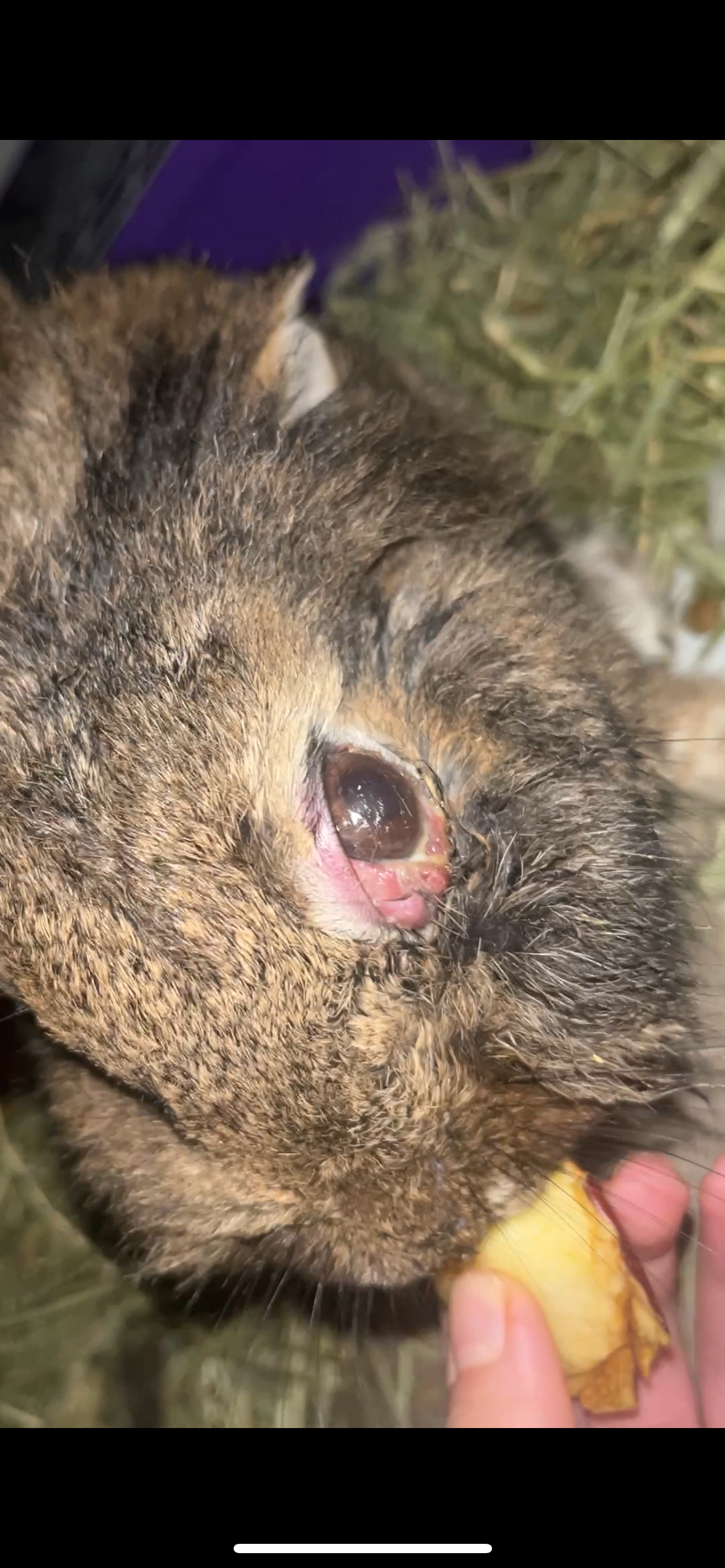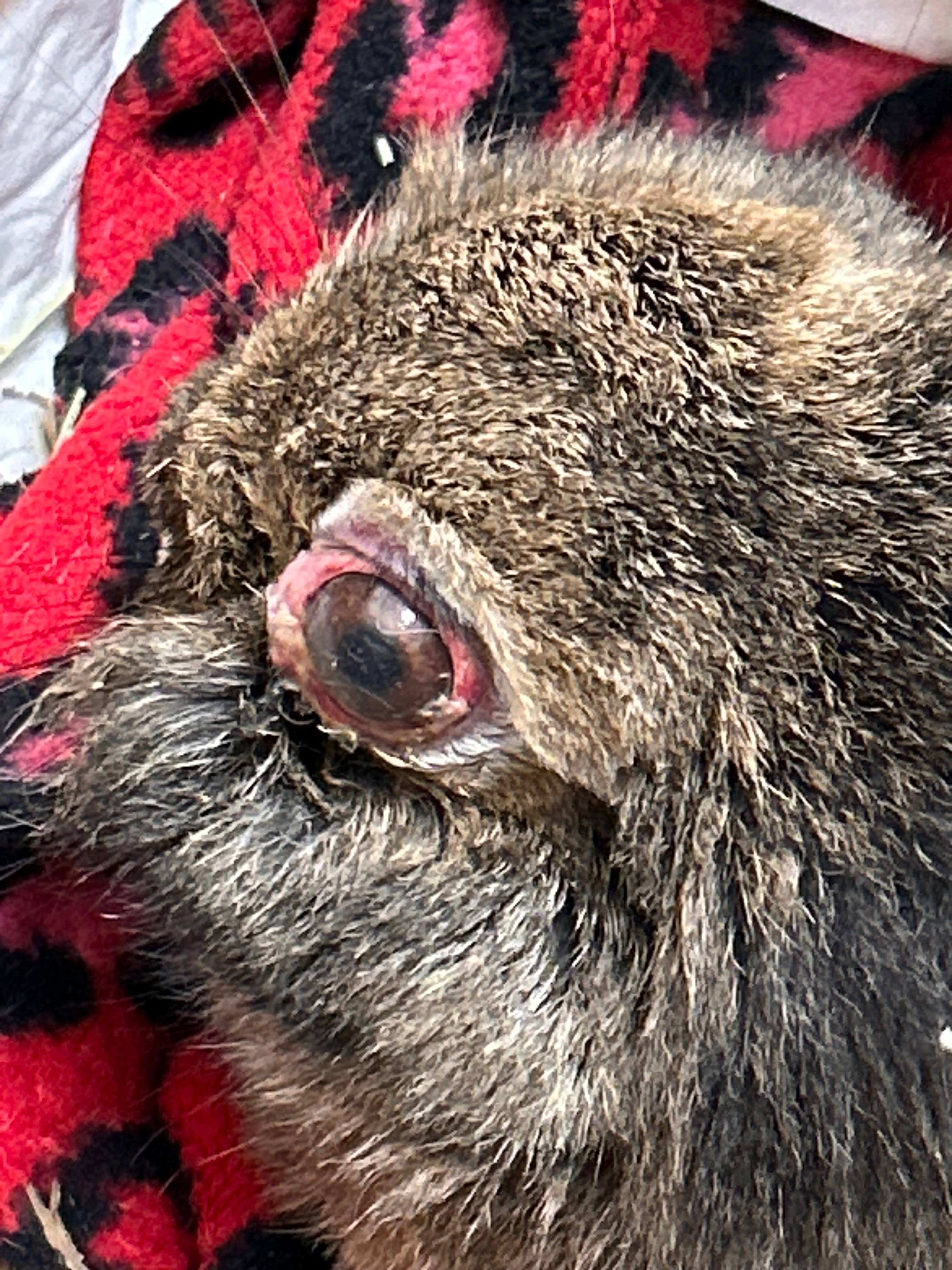 For three weeks, Cinnamon has barely eaten. She can only take a little protein through a syringe from the vet. Her eye is swollen, and she is getting weaker every day.