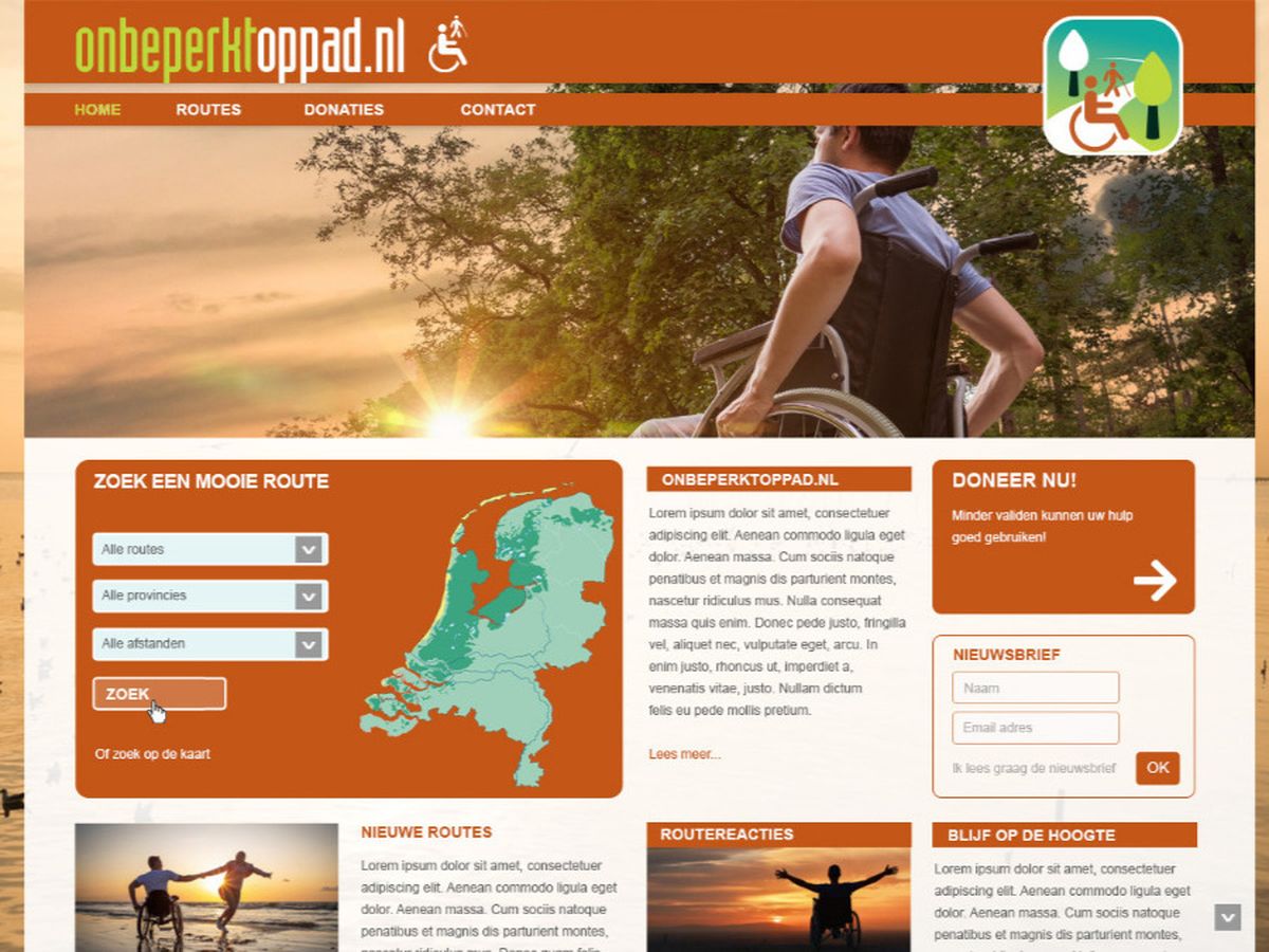 De website onbeperktoppad.nl wil hieraan wat doen en zo de drempel verlagen om iedereen van onze mooie natuur te laten genieten. De website stelt zich tot doel zoveel mogelijk rolstoelroutes in Nederland in kaart te brengen en op één centrale plek te verzamelen. Bij iedere route worden de faciliteiten en de geschiktheid voor rollator, rolstoel, scootmobiel of aangepaste fiets vermeld.