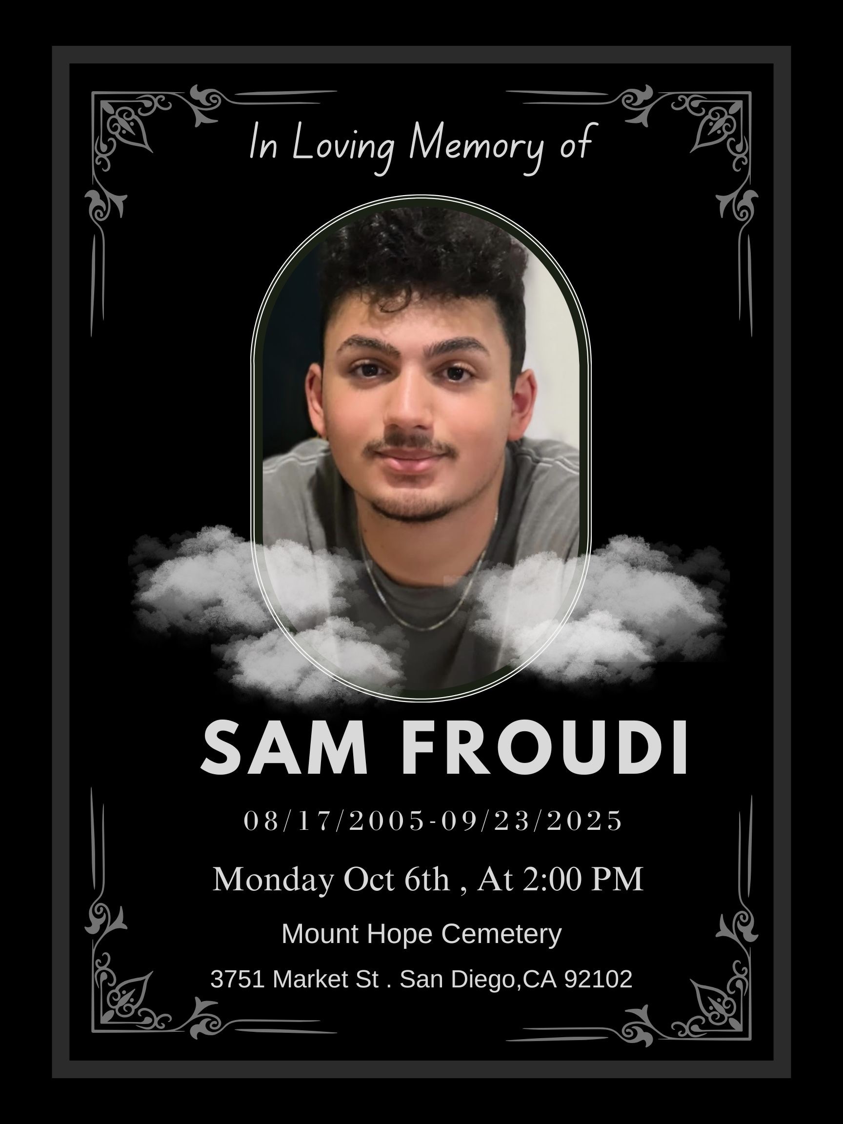 It is with heavy hearts that we share the heartbreaking news of the passing of Sam, a beloved son and friend. Sam touched the lives of everyone who knew him — his kindness, warm smile, and joyful spirit brought light and love wherever he went. He was the center of his mother’s world and her only child, deeply cherished by her, adored by his friends, and an irreplaceable part of our community.