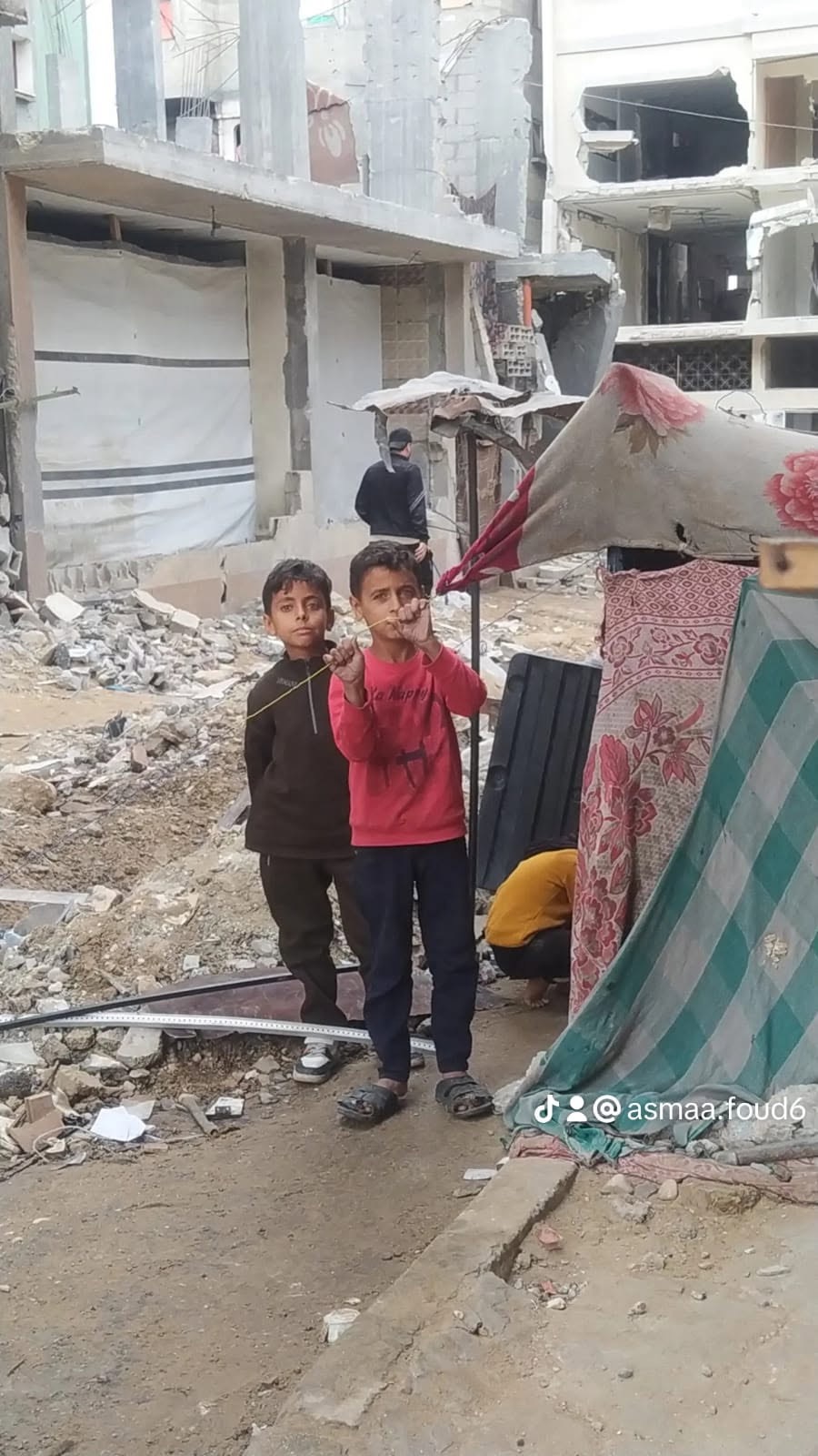 Je fais cette cagnotte pour aider Asma et sa famille, j'ai rencontré plusieurs Palestiniens sur les réseaux, certains ne sont plus là et aujourd’hui j’ai décidé de faire quelque chose pour cette famille. Je suis en contact régulier avec Asma et sa famille, je suis attaché à eux et j'ai peur pour eux et peur de les perdre. Ils sont 6, Asma, son mari et leurs 4 enfants, 2filles 2 garçons. Le papa a été blessé suite a un tir lors d’un distribution de denrées alimentaires. Ils n’ont nulle part où se réfugier, ils doivent se déplacer très souvent pour fuir les bombardements incessants pour pouvoir survivre. Cette cagnotte va les aider pour: