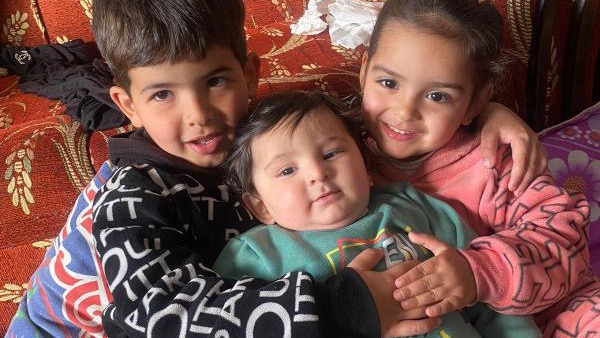 I’m Nour, I’m alone with my three children: Nahed, 5 years old, Elien, 3 years old, little Kareem, only 7 months old. My husband has been in Egypt since before the war started. Because of the destruction of our home in northern Gaza, we were displaced several times, until we arrived in Rafah. Our children are suffering a lot from the lack of food and clean water, milk and diapers are nowhere available.