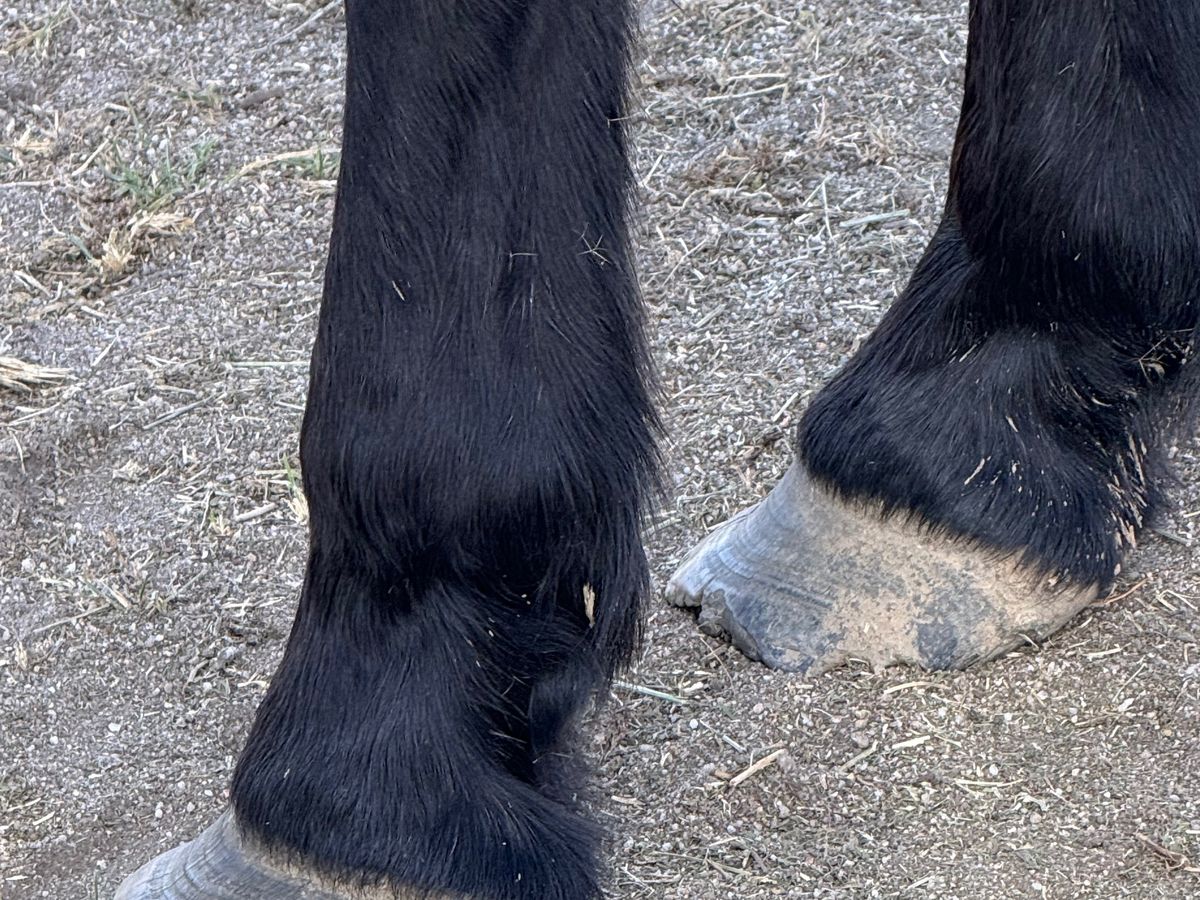 Not Starving ……sadly the opposite problem ….signs of laminitis in all of their feet ( see pics ) These horses have apparently been running on the property for several years , and are all in desperate need of farrier work , dental work and worming plus vaccinations . They have all clearly been laminitic and had no care at all for a long time, with one poor aged fellow having particularly terrible teeth .