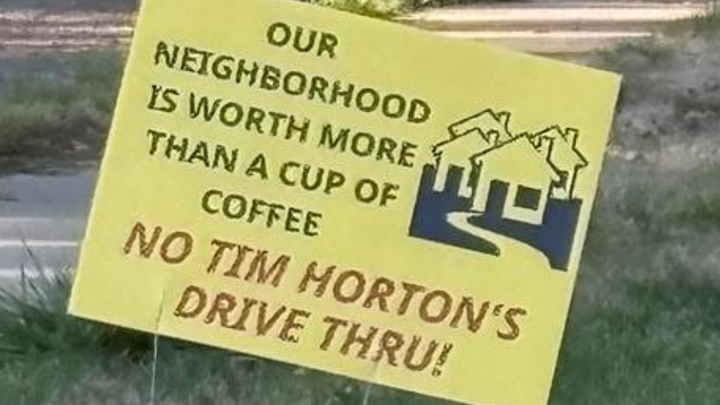I am a resident of Harris Hill who is part of a large collective community that is adamantly opposed to the Tim Hortons drive-through on Main St & Harris Hill due to traffic safety issues.