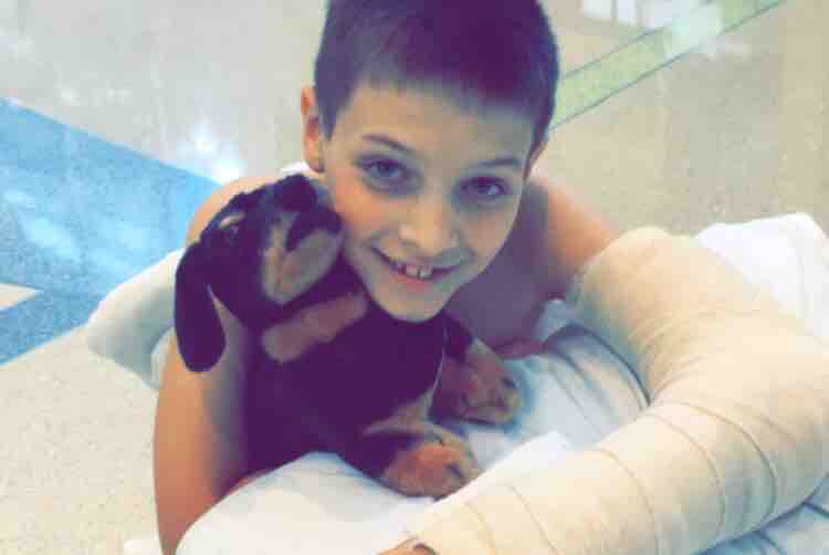 Julian was then sent to the pediatric progressive care unit at Levine Children's Hospital. He was slightly concussed, has bruised ribs and bruised internal organs. But the main thing is the arterial reconstruction they had to do. Once the pediatric orthopedic surgeon team had his bones reset and pinned in place, the vascular surgeons had to go in and do a dissection reconstruction of the main artery in his arm because there was no pulse or circulation past the fracture site.