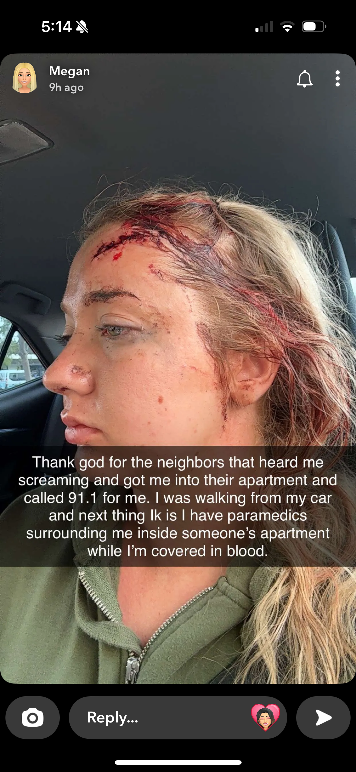 After all that is said, Friday may 9th I went out with some friends. When I got home, I made it merely a few steps from my car before I was brutally assaulted, leaving a trail of blood from my car to the neighbors that saved me’s door. I screamed. I fought. Two angles were on my side. I am forever thankful for the people that heard me and pulled me into their house covered in blood, called 911, and saved my life. I was given 20 stitches. I’m on medical leave of absence at work and don’t know what’s going to happen next. I’m in fear for my life. I’m thinking of moving states. At least, moving from where I am now so I can feel safe at my own home. I’m moving in fear every day.