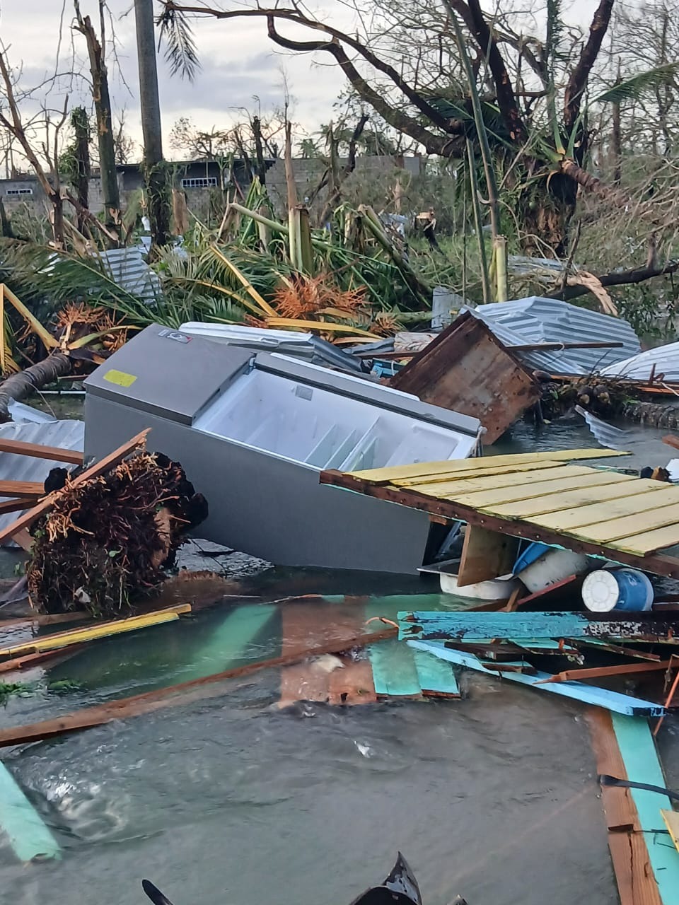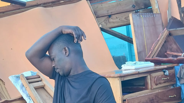 The picture shows my nephew in the wreckage of his home in Jamaica, after the devastation caused by Hurricane Melissa. They have lost everything. All that is left is the floor where the house used to be. He is married with 3 children. I am sending supplies and clothing from the UK but they need greater help to rebuild their home.