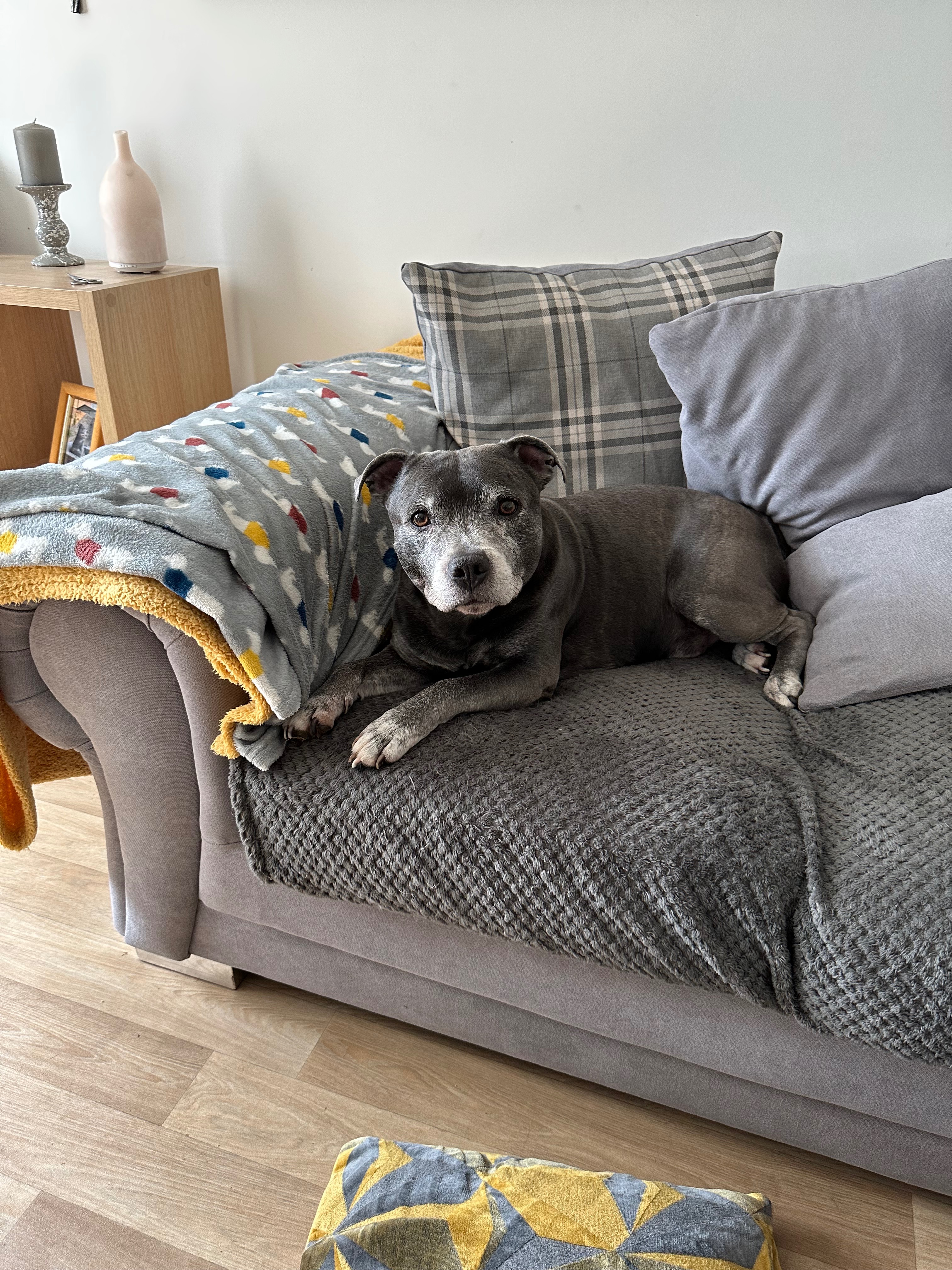 Hi, are names are Jody and Nicole, we have a beautiful blue staffy who we have had since 6 weeks old, he is our baby and has never wanted for anything, he is now 11.5 years old and has had numerous visits to the vets over the past 3 months, it started as we noticed him losing weight/muscle around his hind legs and back, we were told it was a little arthritis but with the right exercise programme, medication and supplements he should be able to live out his years happily, during this time he contracted a uti and was dropping blood periodically, he has at this point finish two courses of antibiotics and is still not improving, we have been told it’s most likely bladder stones, with the rising cost of living and also having a baby on the way we are unable to afford to get him the help he needs and deserves, we have been advised by the vets that he is very healthy apart from this, very strong heart and good muscle mass on his front, we really want our baby boy to be pain free and get him the help he needs as he is part of the family and he loves children, having a new member to the family to protect would be the highlight of his life, he is the kindest sole and helped us through many dark times, he means the world to us, I can’t bare the thought of him being in pain purely based on our financial circumstances, we would appreciate any help anyone could spare and know that it would save a beautiful pup from unnecessary pain, thank you for your time.