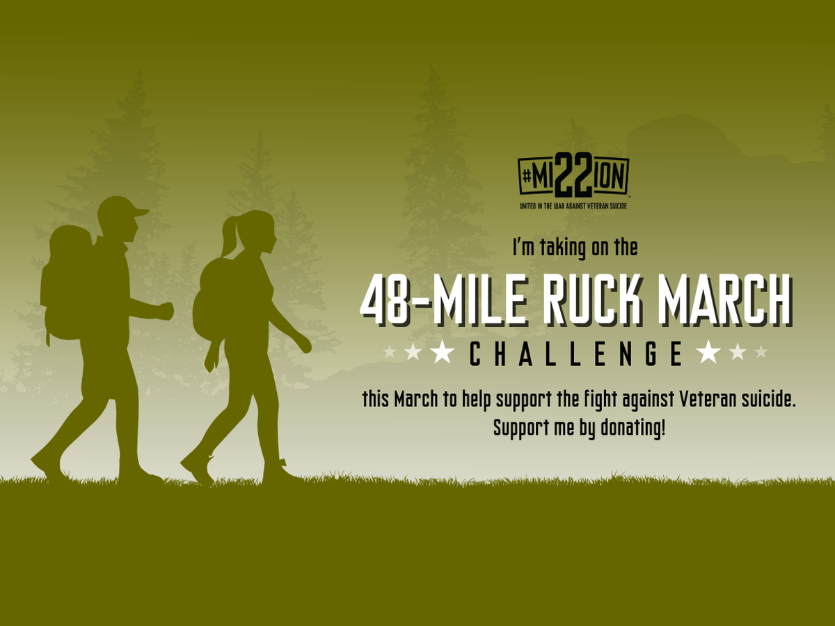 I've signed up for the 48-Mile Ruck March Challenge for Mission 22 because this cause is close to my heart. I want to take action and make an impact. And I would love your help. Whether you donate $5 or $500, every bit counts. I've set an ambitious goal because I know that with support from people like you, I can make a difference!