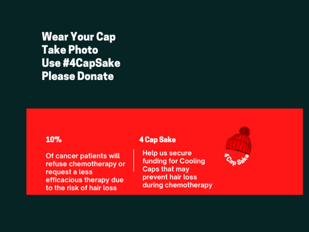 We hope to raise funds to implement scalp cooling for cancer patients and are asking people to wear a cap or hat and use the hashtag #4CapSake and share their photo on social media and donate what they can. This campaign is about awareness as well as fund-raising.