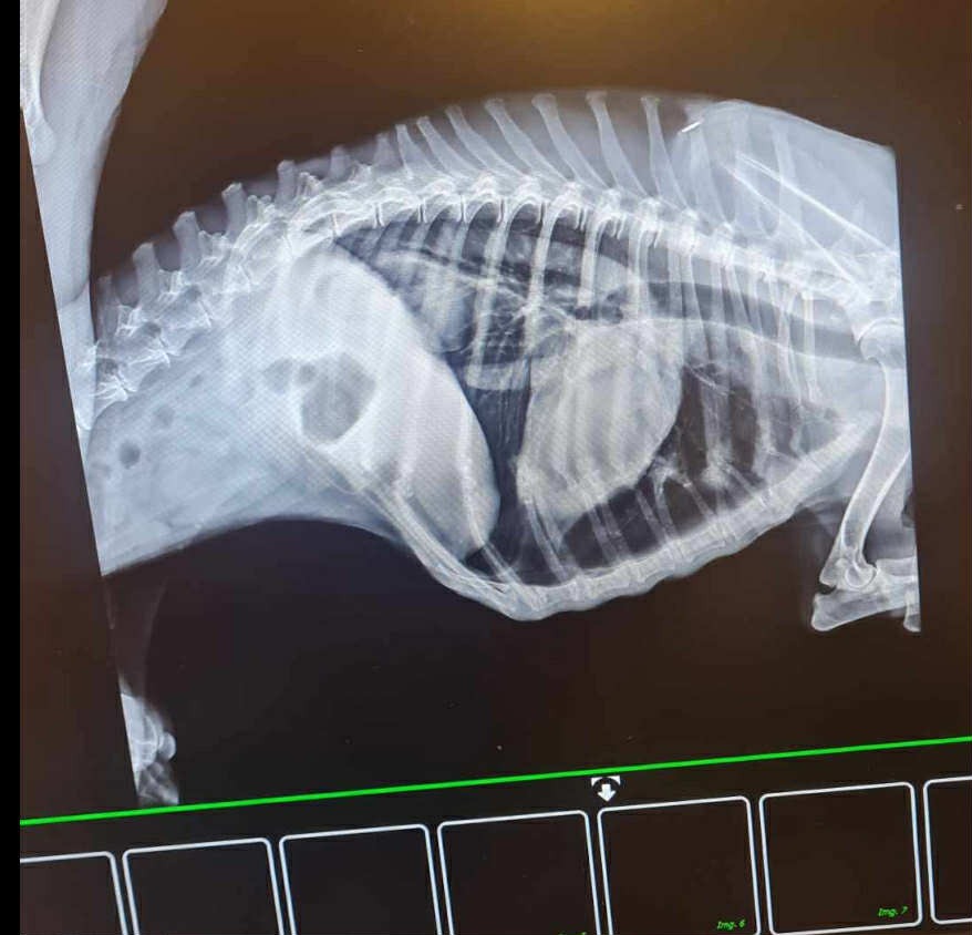 One of our lovely ladies in Romania decided to take her out of bals asap because her life was ebbing away.. This lovely old girl was named Primrose and was taken to a foster shelter to slowly build her up and give her a chance to live.. Unfortunately it became clear she was struggling so immediately went to the vets for tests. There was good news and bad news... for her age estimated to be 12 years, the good news was she didnt have heartworm and her blood pressure was good, she has stage 1 mitral valve heart disebut only requires medication, she also had some form of infection which was treated with antibiotics. The bad news is that an xray showed a mass on her spleen, suspected of being a "hemangioma"... but once she is stronger then an operation is possible and in 90% of cases its benign, for her age and with good food, medication and possibly surgery, she could live a good life.