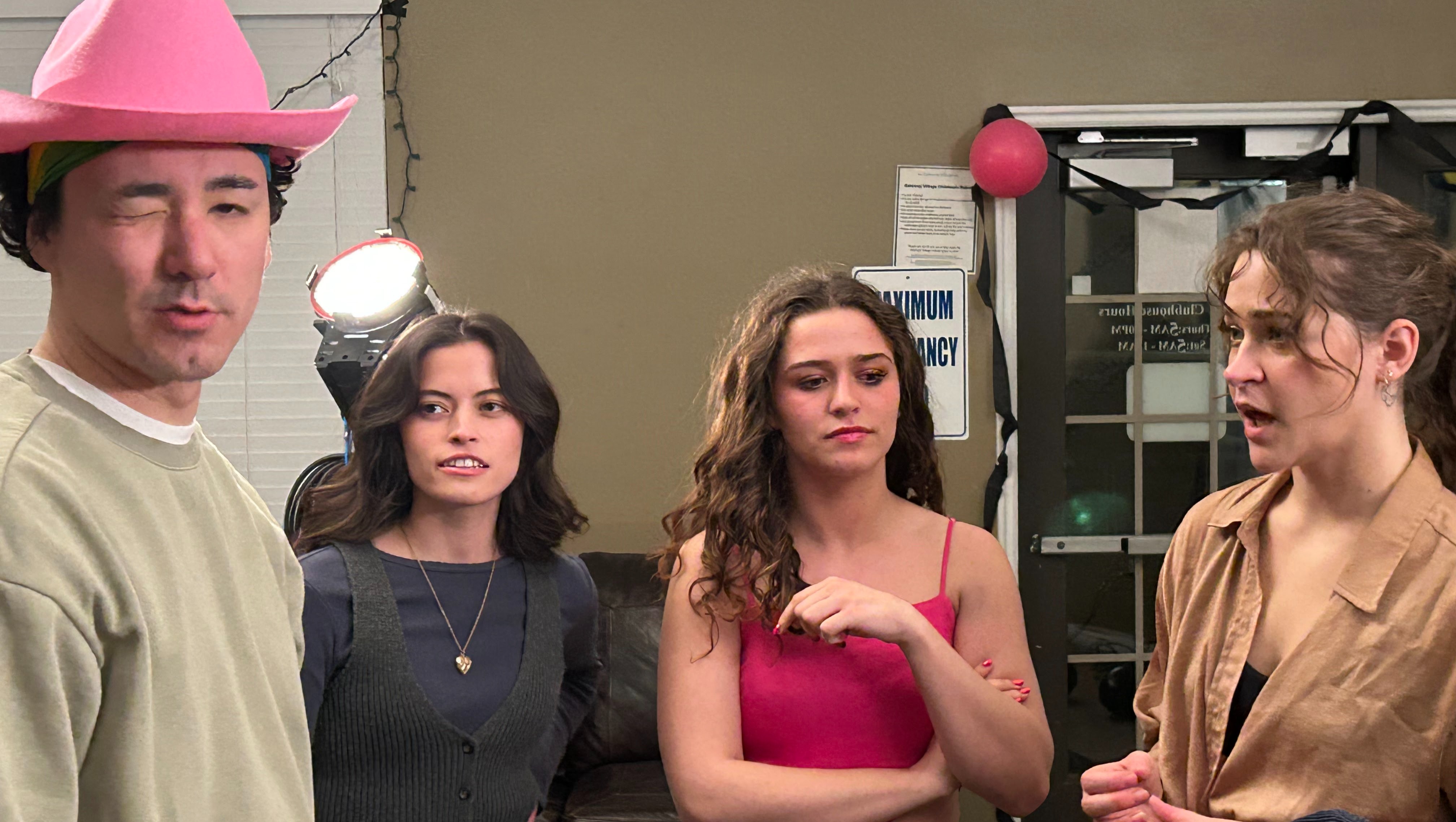 From left to right: pink pony rider (director Eamonn), shortest queen (Mel), power switch (Syd), and friend (Sam)