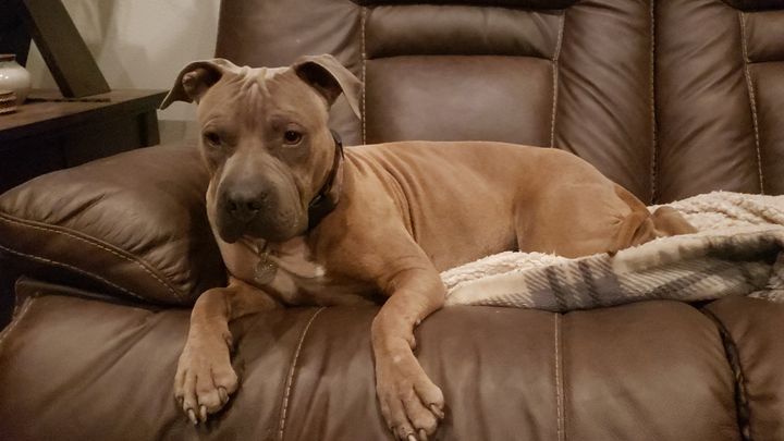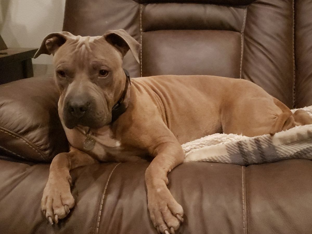 Coco is a 5 year old Pit Bull/Sharpei mix. She was adopted at 2 years old by my brother Ernie. She was a very shy dog and had a fear of people, but now she is very sociable and loves everyone she meets. She is young and full of life!