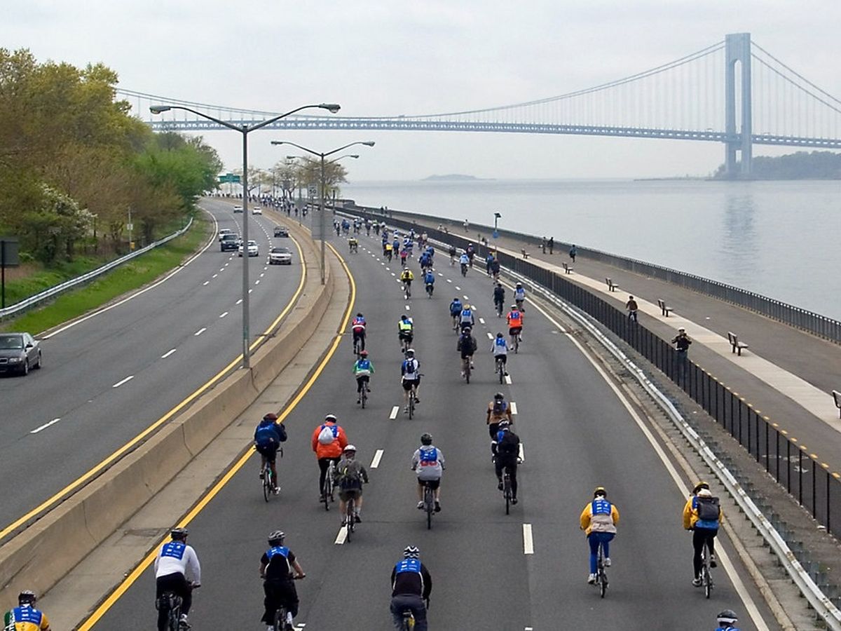 More information about the ride: The Five Boro Bike Tour is an annual recreational cycling event in New York City. Conducted on the first Sunday of May, the 40-mile ride includes over 30,000 riders. The route takes riders through all five of New York's boroughs and across five major bridges.