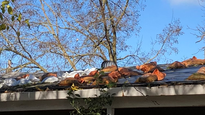 But, the biggest issue that brings us (very reluctantly !) here is the roof on her 65+ yr old home. It’s a goner. We have recently been inundated with rain and the 3 tarps and 51 sandbags from January of last year are no longer working. Now, the garage ceiling is collapsing, the living room has big water stains on the ceiling, and the plywood underlayment on the roof is basically rotted away. (Click through all the pics up there) ... All of the obvious low-income resources to have the roof replaced have been tried and exhausted for one reason or another (H4H, gov’t programs, roofing programs, loans, etc). This is our last and only hope of getting the miracle funds we need to replace the roof.