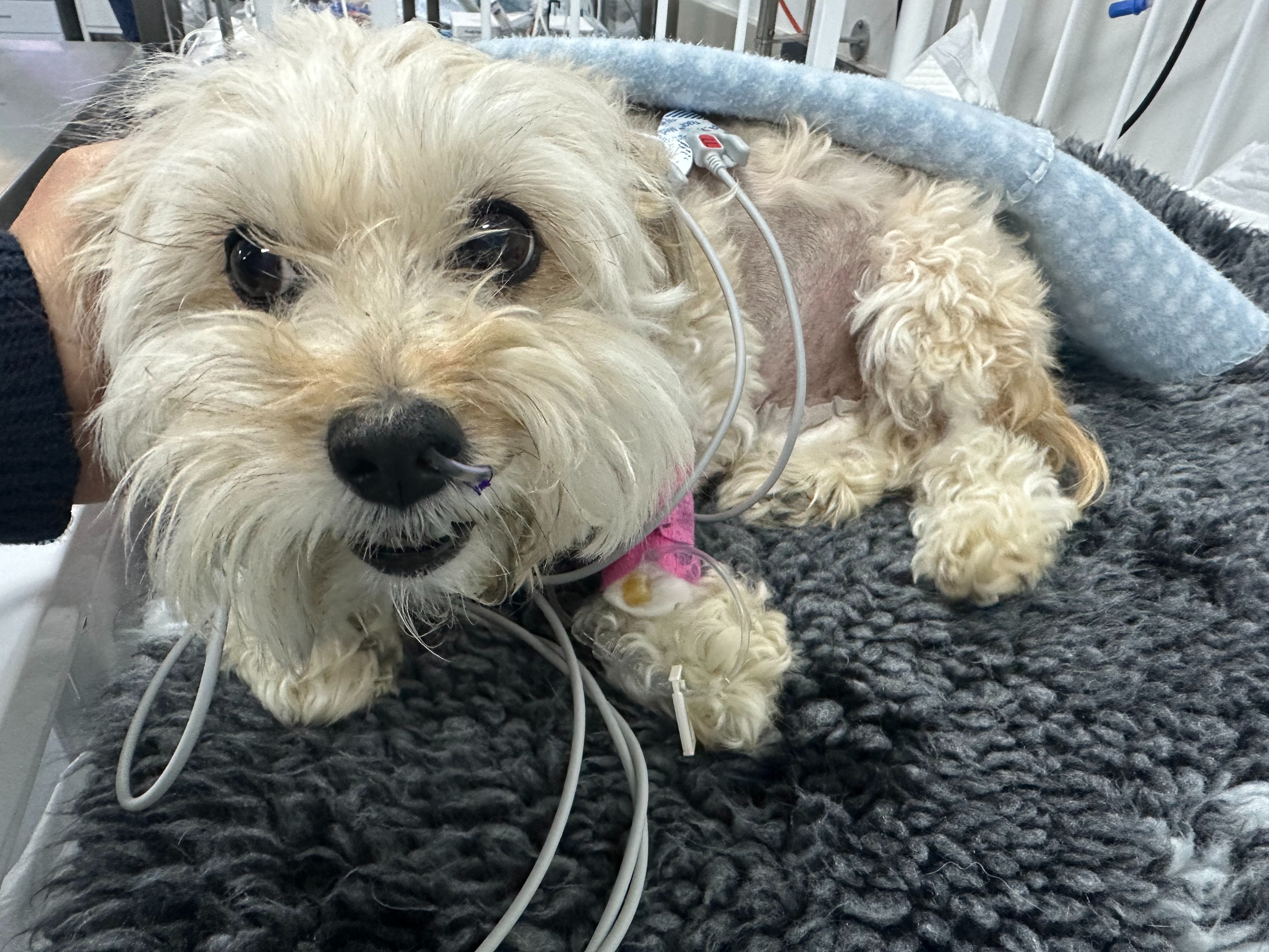 My dear Lilly had to be rushed to the emergency vet hospital on friday morning after being very unwell. She had a blood transfusion to save her life and stabilise her. The doctors found a massive tumour in her belly, that has caused internal bleeding and I had to make a decision within minutes to put her into emergency surgery to possibly save her life.