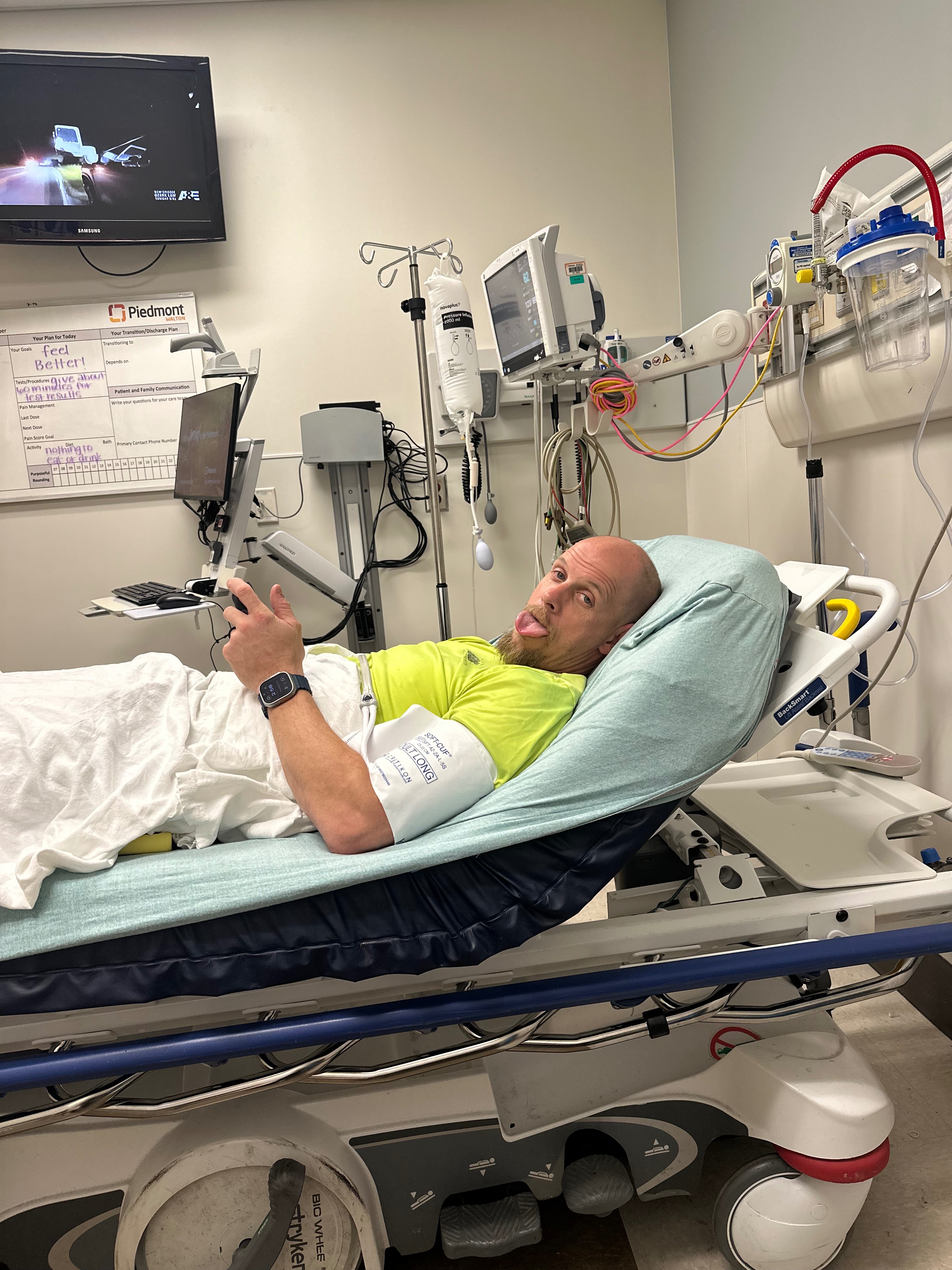 Yesterday, Sean woke up with some blood in his urine. We went to the ER, and the CT scan found a 13x9cm mass on his left kidney. Sean has been admitted to Northside Gwinnett, undergoing scans to check for spread and surgery to remove the kidney and the mass. We have been told it’s cancer. Sean is only 40. He has a good prognosis, but he is going to need treatments and he is not going to be able to work.