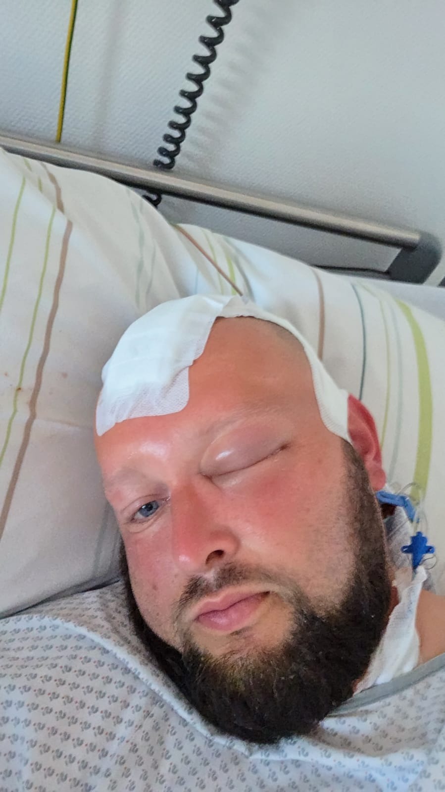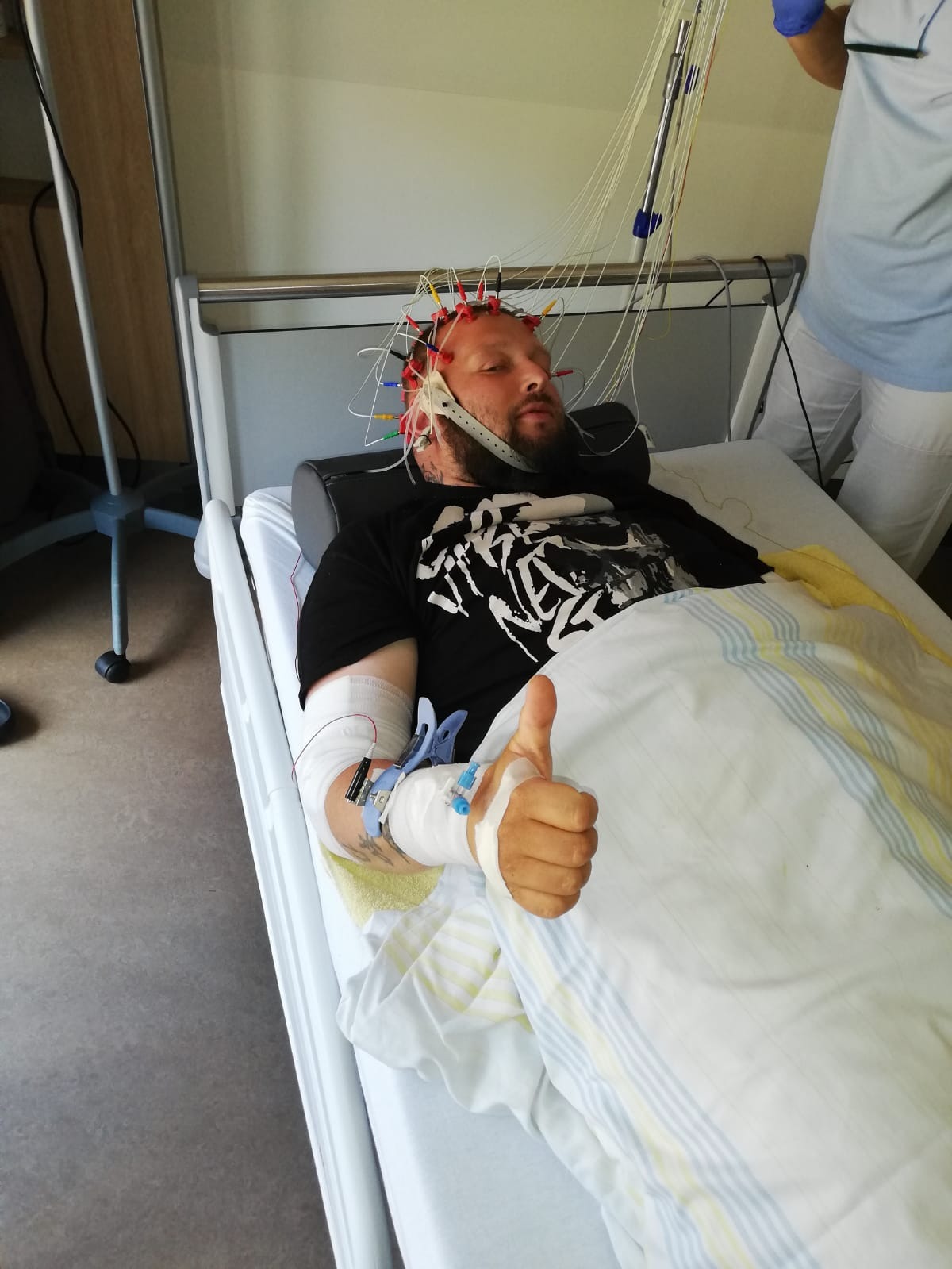 Auf der Intensivstation wurde festgestellt das Chris seine linke Seite nicht mehr bewegen kann. Sofort wurde ein CT gemacht ,auf dem war aber nix zu sehen.