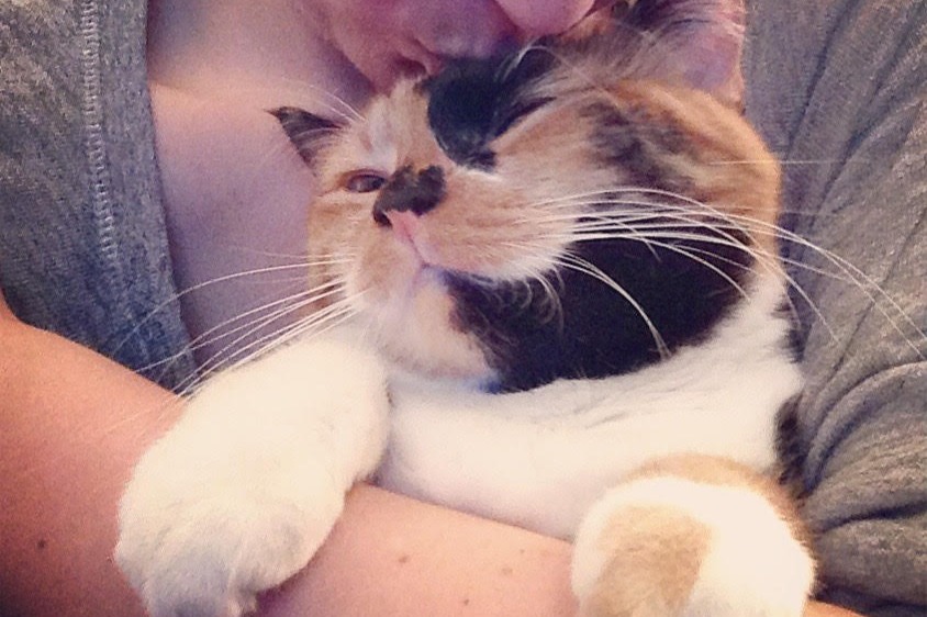 This is my cat Chloe, she is a 9 year old calico and is the apple of my eye. She is leery of strangers but has nothing but love to give to the humans she knows well. She's not fond of her little cat brother but does her best to tolerate him. She has been with me through some really tough times, never judging (except when I don't feed her fast enough), just loving.