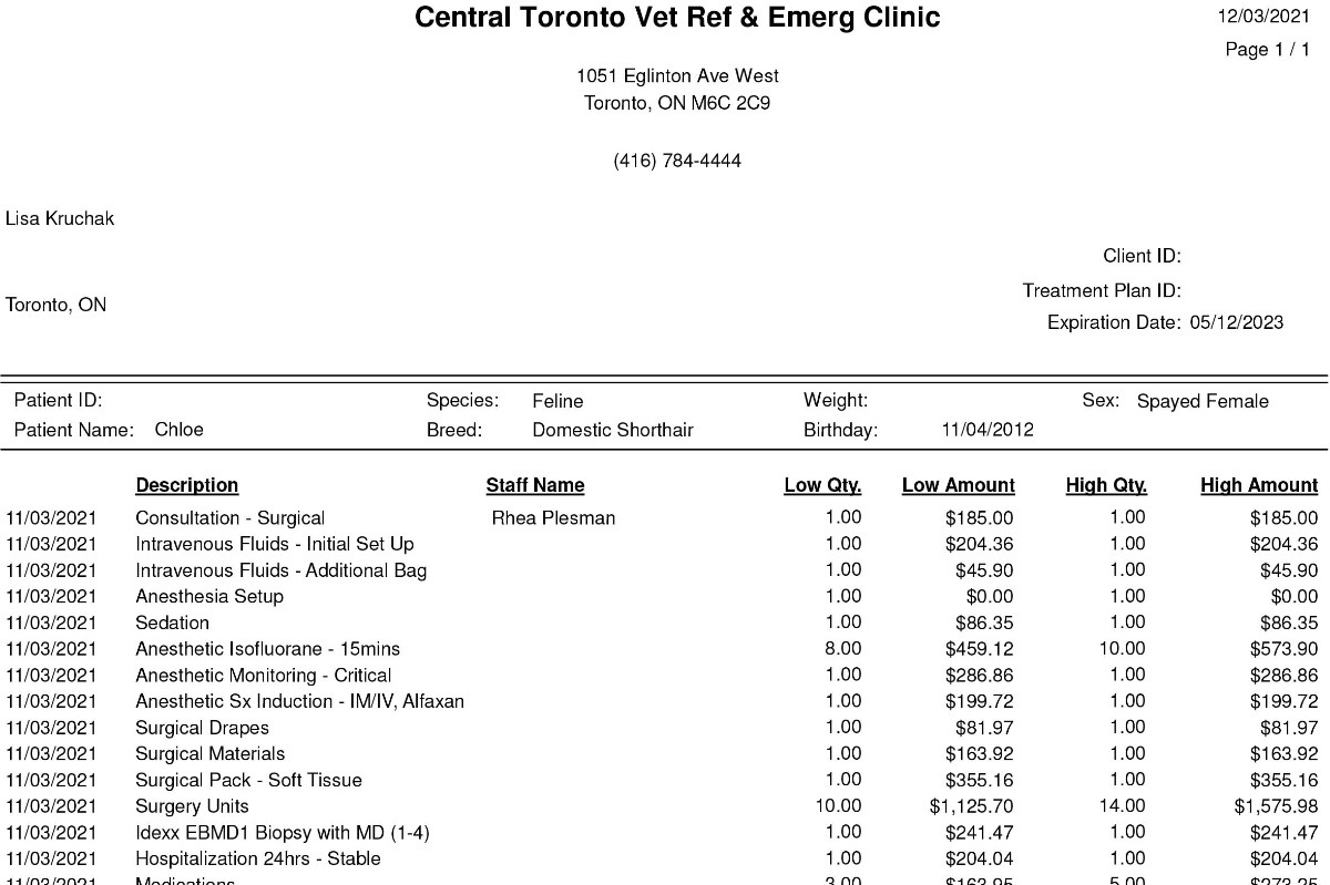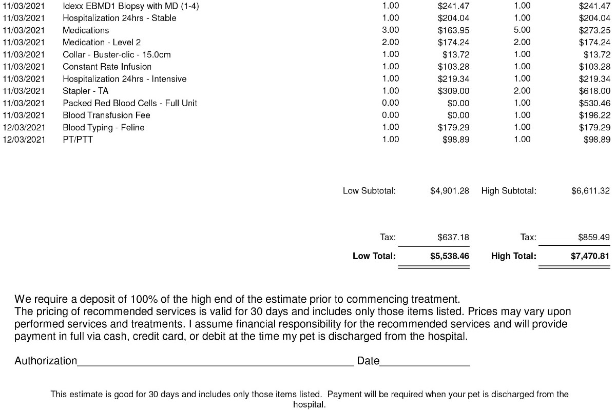 On a routine check up our vet discovered a lump in her abdomen. After some follow up tests and an ultrasound, the vet was able to determine that the lump is located on her liver. Though it seems to be benign, it would be best to remove it before it becomes cancerous or grows larger and impacts her other internal organs. She already vomits somewhat regularly which could be a result of the lump and I would hate to see it get any worse.