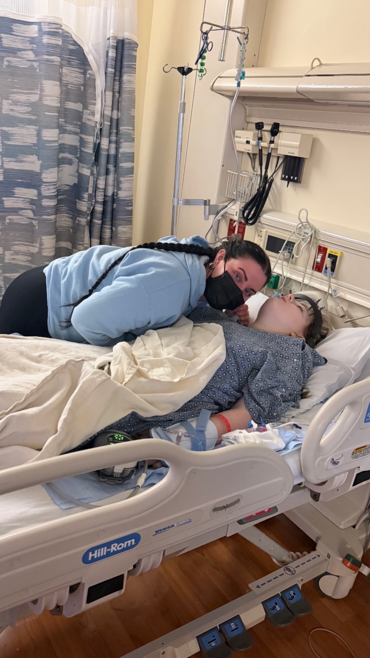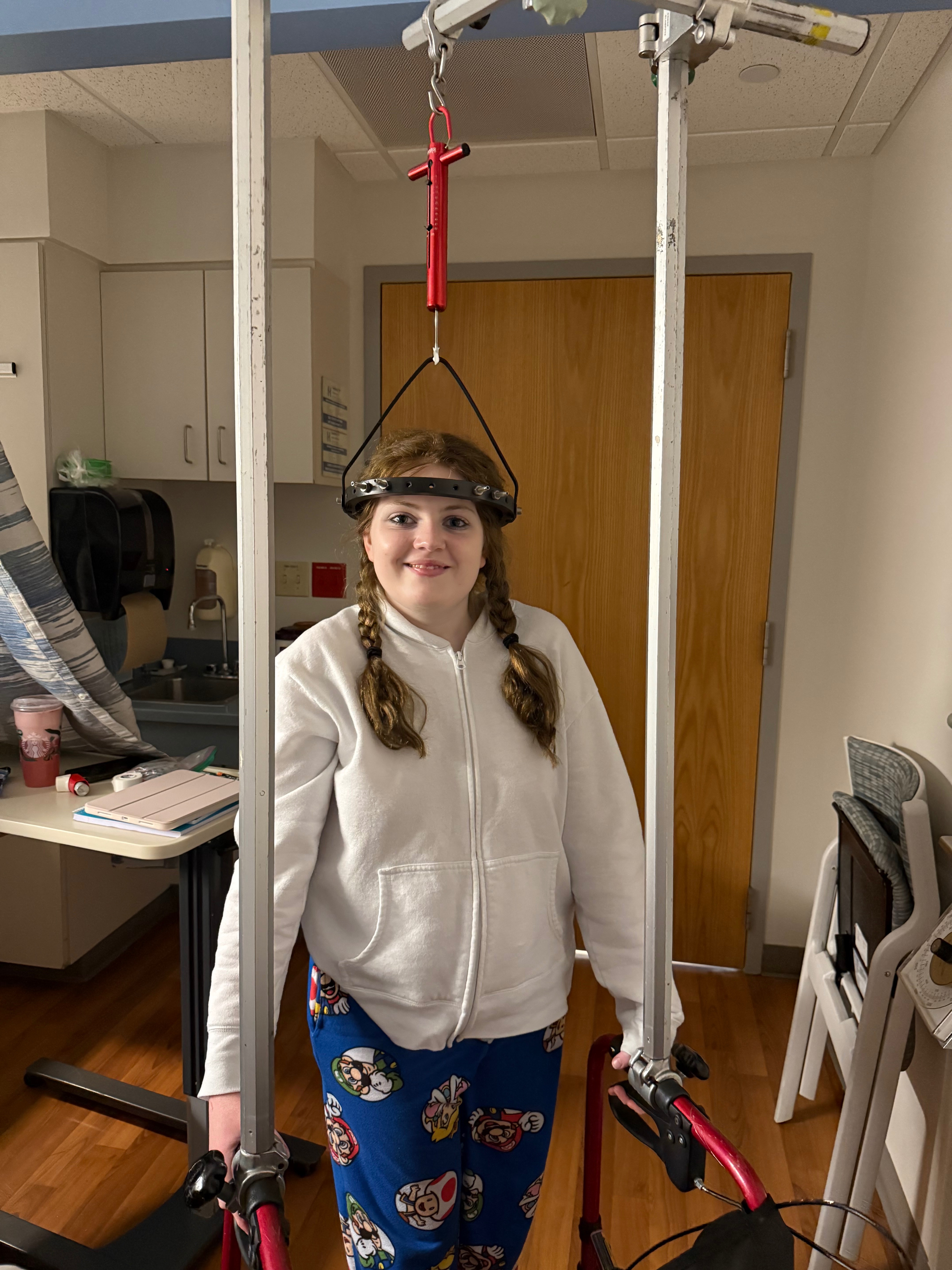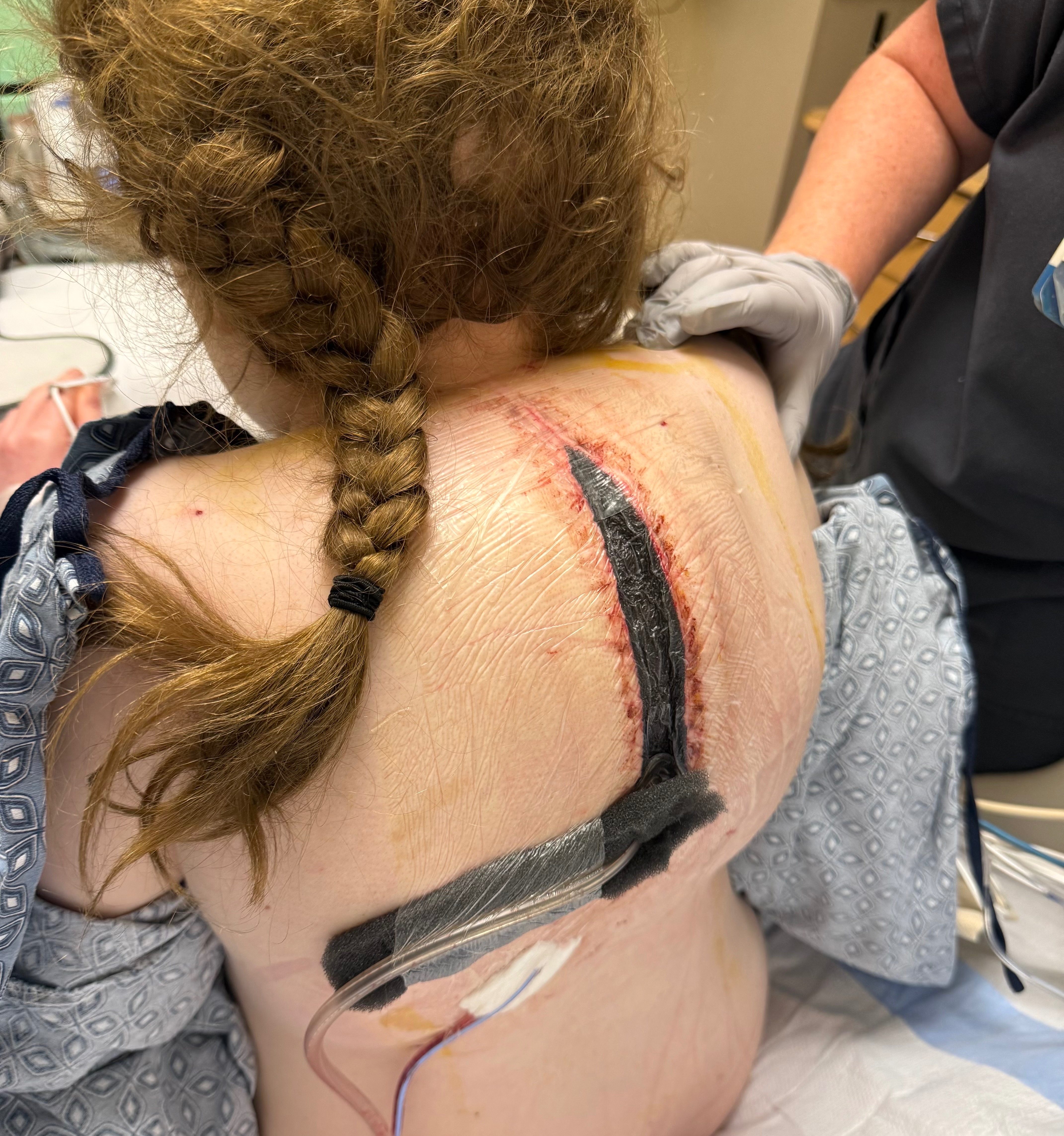With the tumor now stable, because of the clinical trial she’s on, she decided she wanted to correct her 100 degree kyphosis. In hopes of getting to have some sort of normalcy for once in her life. She was placed in halo traction on November 10th she was doing great. On December 8th she underwent a release of her spine that was supposed to help her spine stretch more, she did great for a week. Then she started to decline in balance & mobility. Despite repeatedly voicing concerns about her worsening condition, imaging was not completed until I strongly advocated for further testing. When scans were finally performed, the severity of her spinal deterioration became clear. There was fluid that was compressing her spinal cord. They were able to drain the fluid but when they went to close the incision she lost all of her spinal function. So not only is her wound site still open, she is now unable to walk or even attempt to get out of bed because of the fragility of her spine . She has been like this for a week and will remain in this state until after her fusion, which is scheduled for Jan 5th. That is a very risky surgery in itself but she now has to face that with all of the other complications. We don’t know how she will come out of that. Or if she will even be able to walk. All of this is happening while she continues treatment for the tumor within her spine.