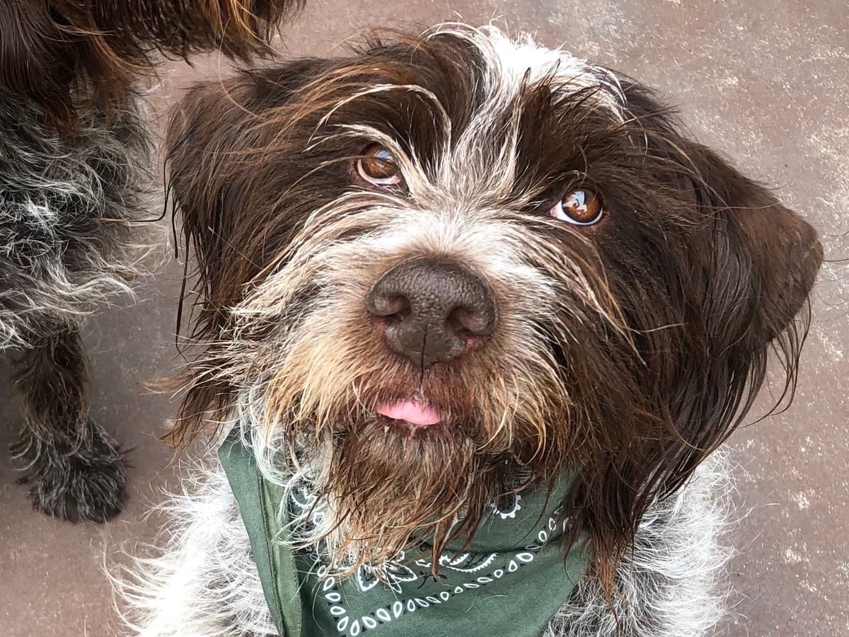 I adopted Frank, a wirehaired pointing Griffon from the Humane Society of Northwest Montana when he was almost 5 years old. In the few years I have had him, he has been the most fun, active, goofiest boy. He’s never met a stranger and has remained a loving, playful, and patient papa dog to the many dogs who board in our home.