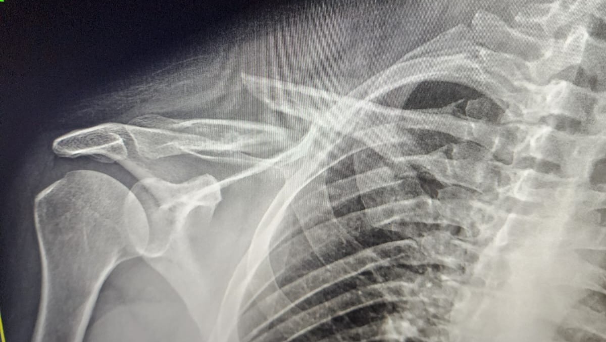 Had a follow up visit for his shoulder. Upon reviewing the images, we were able to see how the fracture is. He has a mid shift clavicle fracture. His shoulder is currently shifted down around 2 inches. Next step is shoulder surgery.