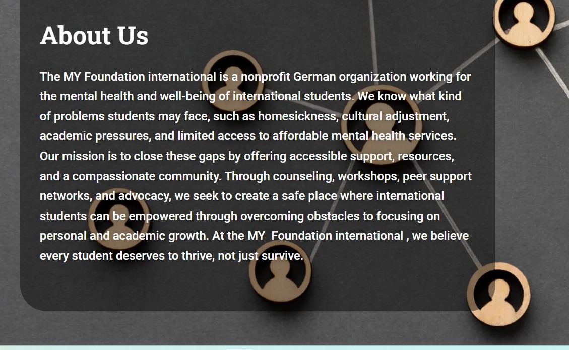 That’s why I founded the MFI Foundation (Mental Health for Internationals)—a project dedicated to supporting the mental health and personal empowerment of international students.