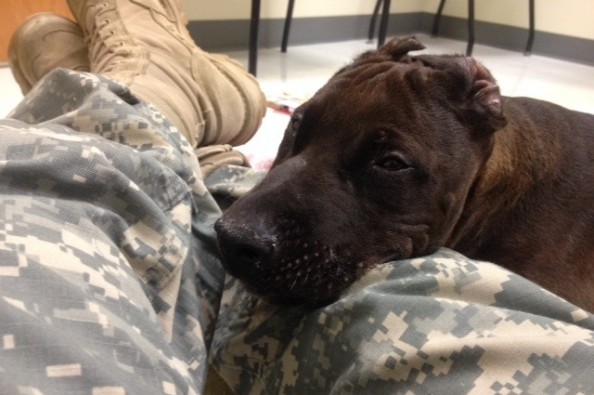 "Kevlar" is a beautiful and sweet Pitbull mix puppy suffering from a rare but curable disease, and he needs your help! A few nights ago a physician in the U.S. Army found Kevlar by his house, weak and in distress, with evidence of a badly performed, botched ear crop job. Although he was very sick, Kevlar never stopped wagging his tail and being friendly to his rescuers. Despite the fact that Kevlar was a stray, and that the physician's wife was due to have a baby, and that he was also getting ready to deploy, the Army physician rushed him to the local veterinary emergency hospital for care, where I was the veterinarian on duty that late night. The physician paid for Kevlar's emergency vet bill out of his own pocket. During the night, Kevlar began showing other odd signs that led us to realize that Kevlar had contracted tetanus! I paid for additional tests and medicine myself in hopes that I could keep him alive long enough to find someone to continue his care in the morning. I contacted two other Army veterinarians at the local base who agreed to foster the dog and continue to treat him for this rare and potentially deadly, but curable disease. Like the Army physician, they, too, are paying for his care out of their own pockets. Kevlar continues to improve slowly, but he's not out of the woods and will require intensive care treatment for several weeks, and expensies are adding up. Let's help offset the cost of Kevlar's care and show our apprecition to these brave active duty military personnel who put their own concerns and finances aside to show compassion to this puppy in need.
