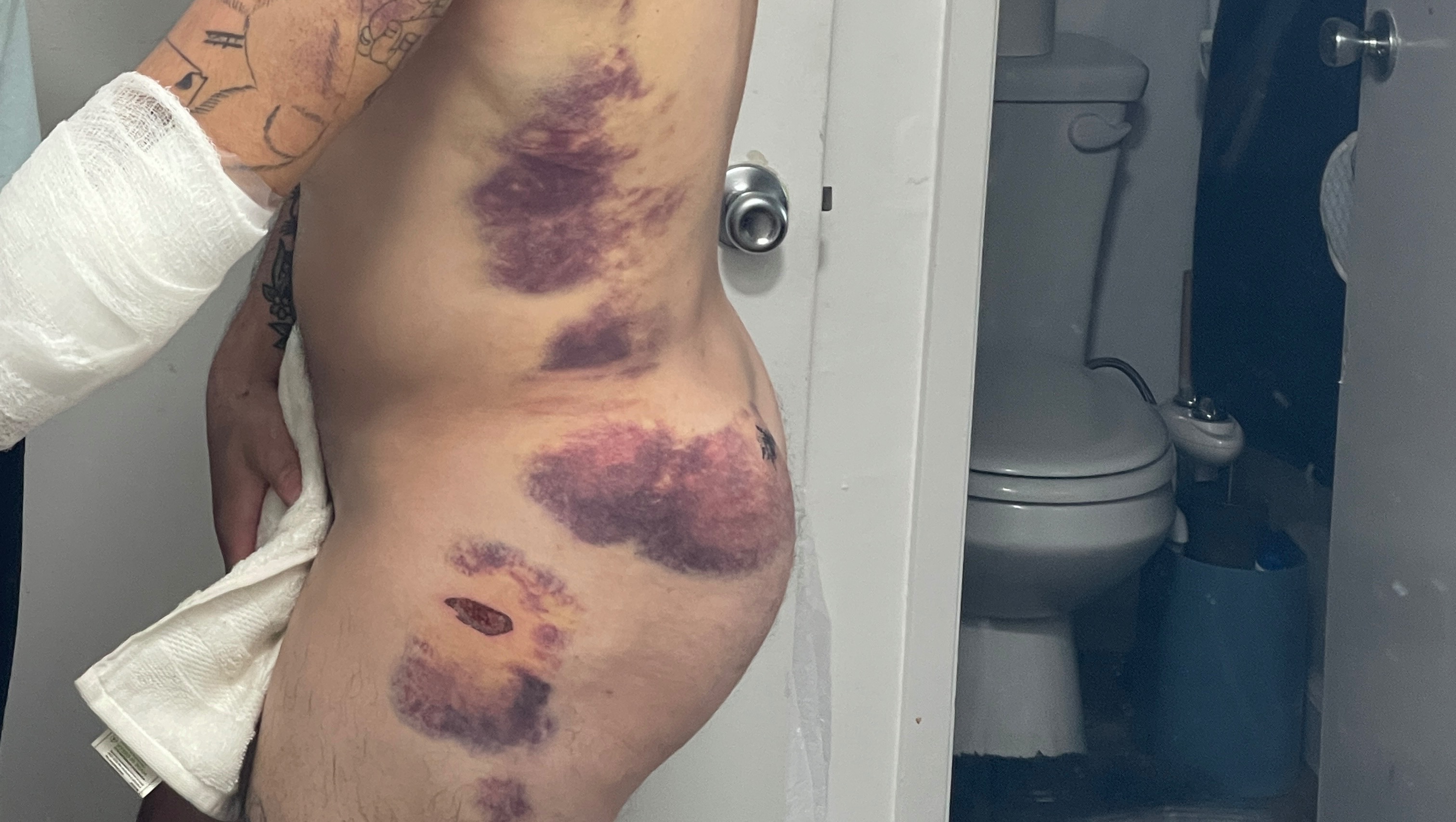 My name is Cole Garcia, and on Thursday, 01/30/25, I was involved in a massive motorcycle accident which involved a pothole, and big bumps on the freeway that caused my bike to be thrown into a low side at 75 mph. I rolled