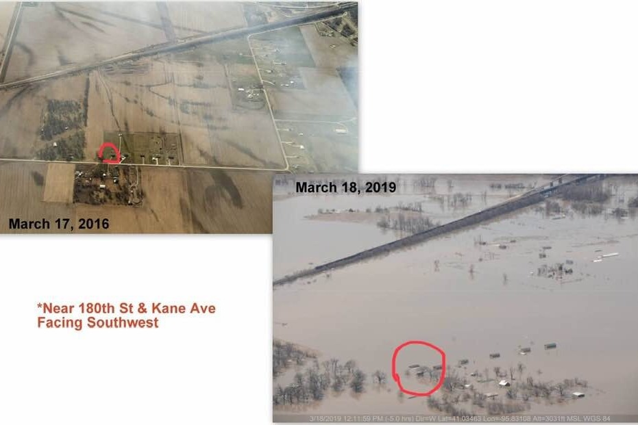Paula and Scotty just got married in November 2018, eager to begin their lives together. Scotty, a pilot in the United States Air Force, and Paula, a lover of all animals, bought and moved into their dream home near Offutt Air Force Base, Nebraska along with their furry family. They built a beautiful barn on their property and put in much research, time, and hard work to make it the perfect place for their animals. The rising waters of March's catastrophic Midwest flood engulfed their home, barn, and land. Their barn is completely underwater, as is most of their two-story house. Luckily, the couple and their three horses, mule, dog, and house cat were able to evacuate in time. Three barn kitties did not make it.